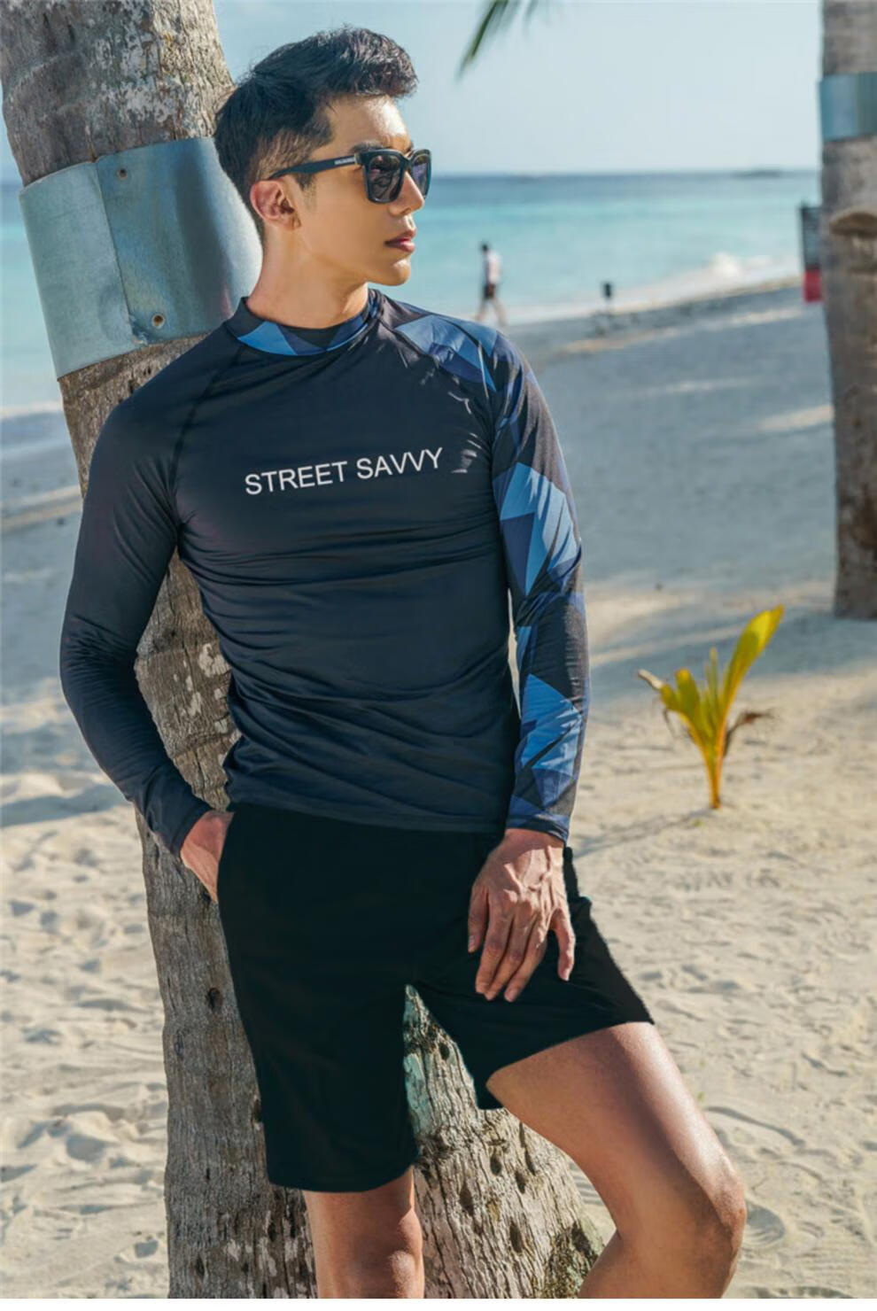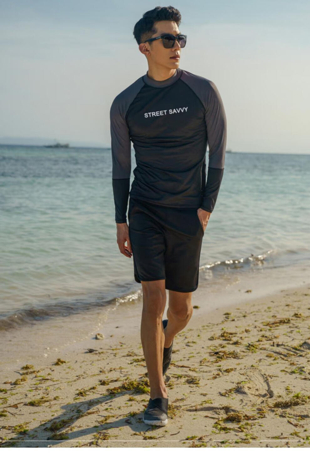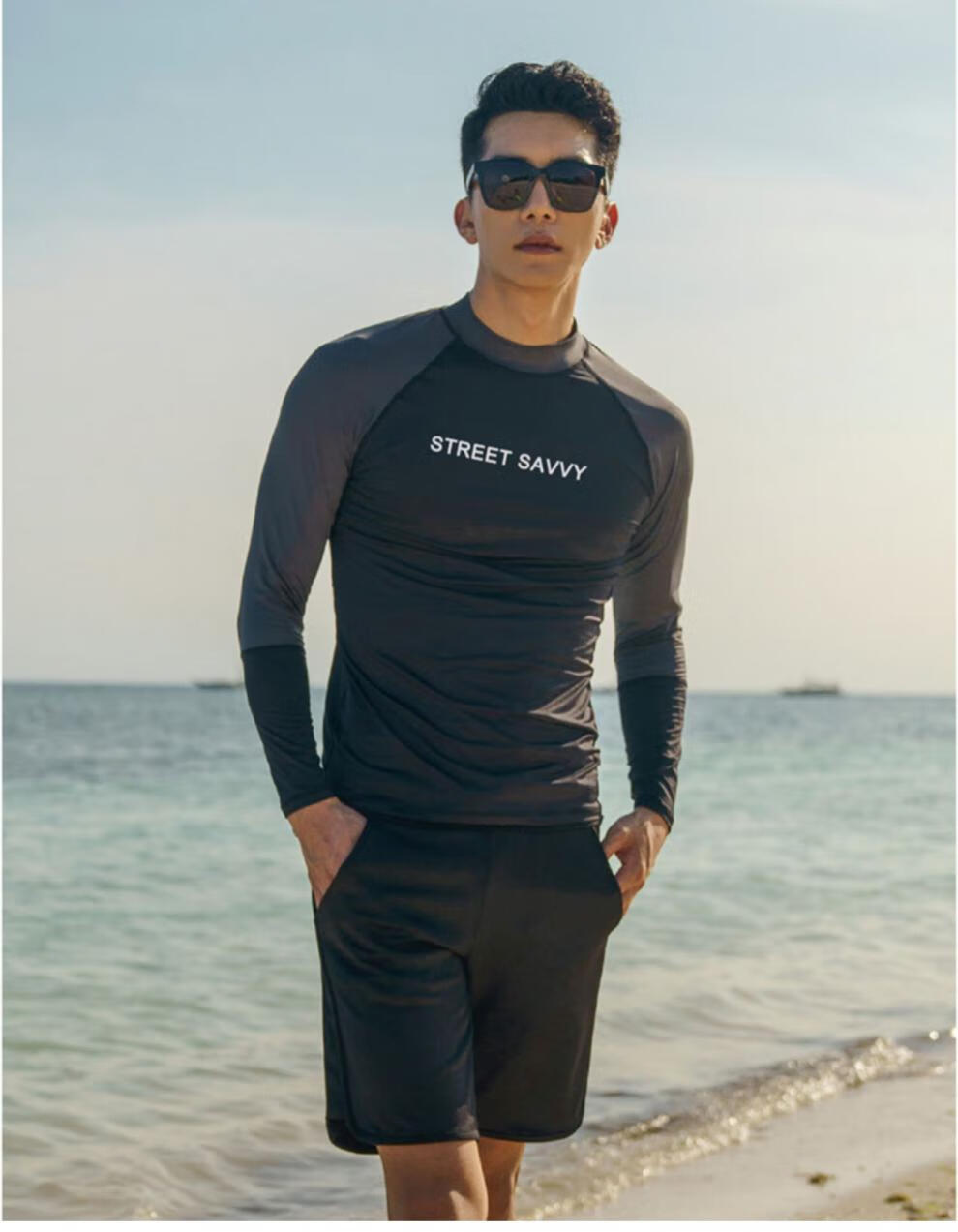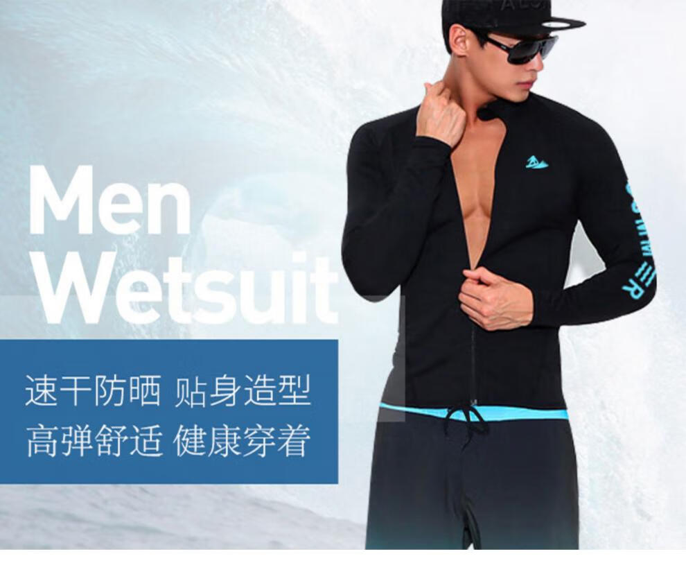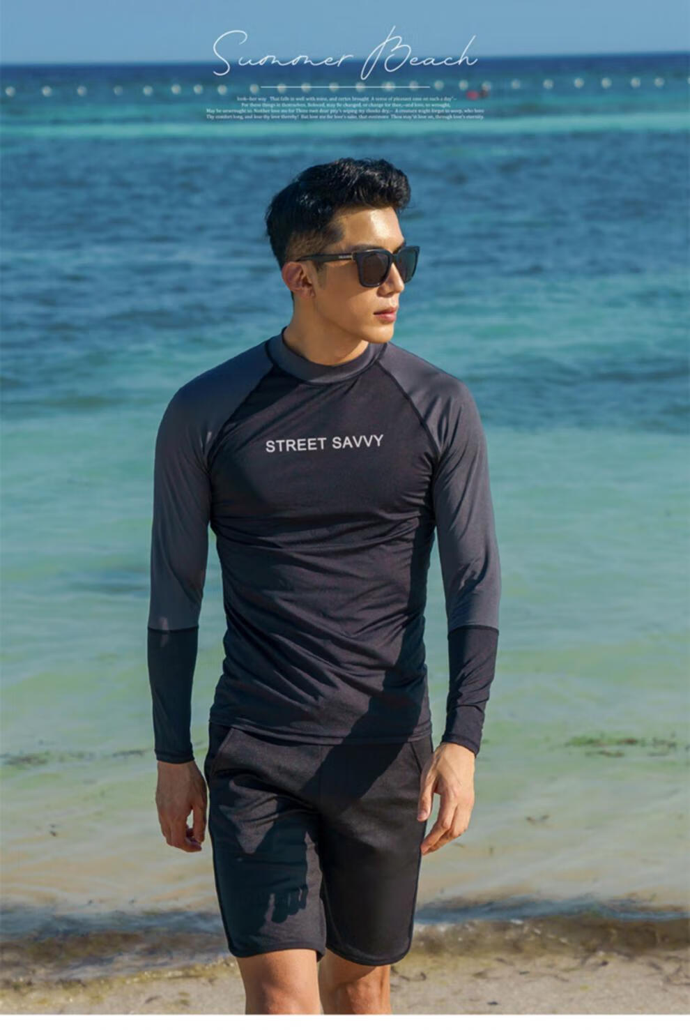 Youlie's new wetsuit men's split sunscreen long-sleeved swimsuit large size snorkeling suit quick-drying surfing jellyfish suit black gray black top M M recommended 110-125 Jin Jin equals 0.5 kg