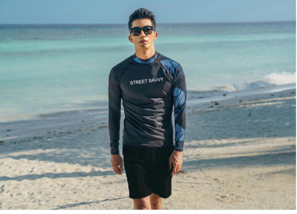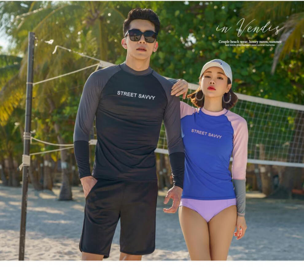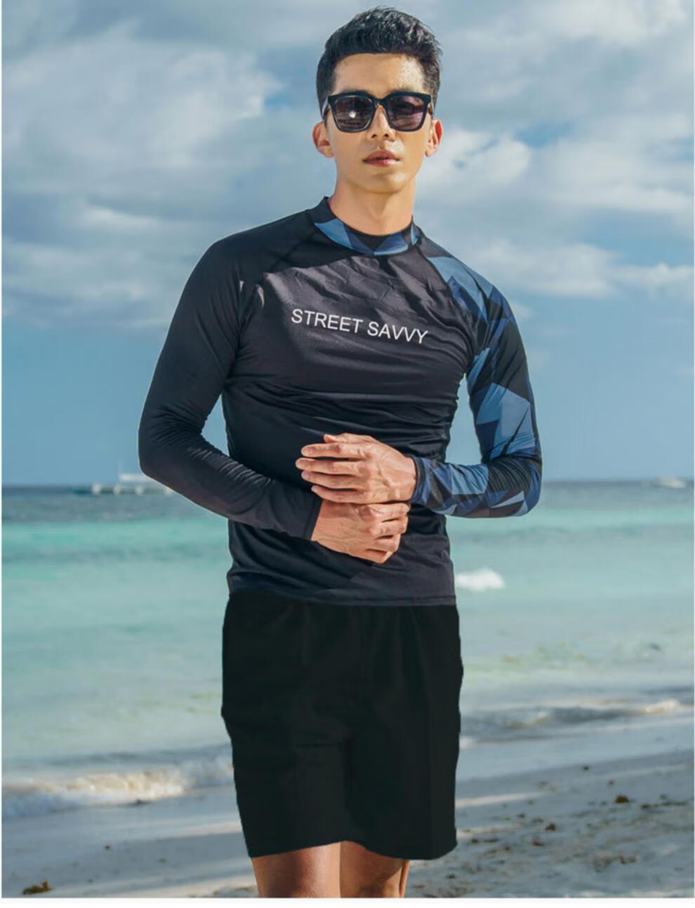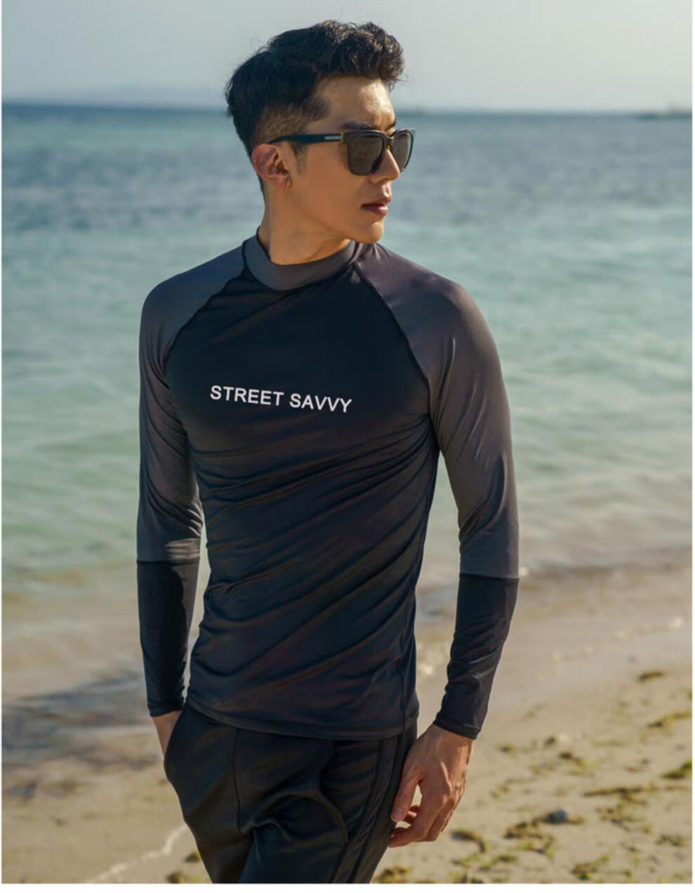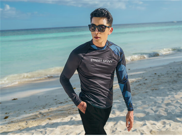 Youlie's new wetsuit men's split sunscreen long-sleeved swimsuit large size snorkeling suit quick-drying surfing jellyfish suit black gray black top M M recommended 110-125 Jin Jin equals 0.5 kg