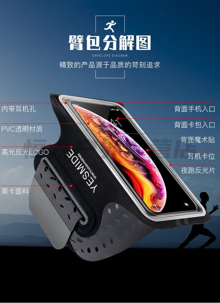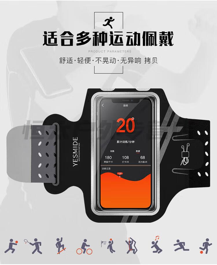 Zailu running mobile phone carrying artifact running mobile phone arm bag arm arm sleeve men's sports and fitness wear on the arm black large size 6 o'clock 9 inches universal