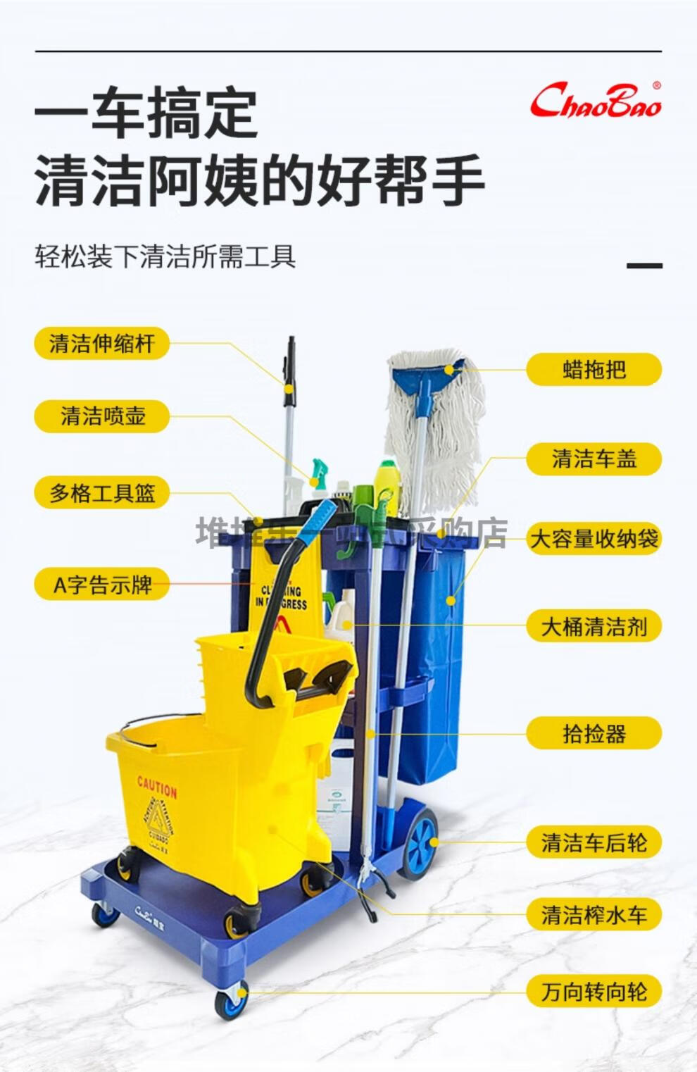 Chaobao (CHAOBAO) Baiyun Chaobao D-11 multi-functional cleaning trolley hotel room linen cart property cleaning tool cart property-specific A package extra thick cover with gray color please contact customer service