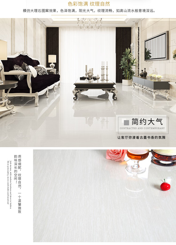 Qiaobole ceramic tiles floor tiles 800X800 living room floor tiles vitrified tiles 600X600 anti-slip wear-resistant engineering polishing white Pilates