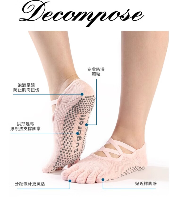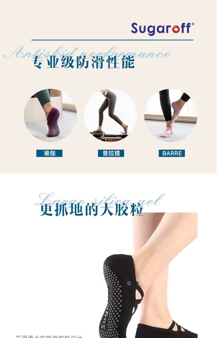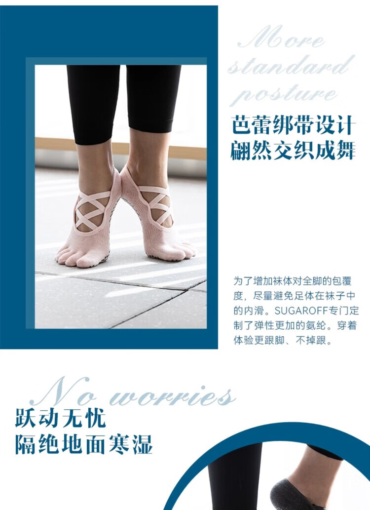 Sugaroff Pilates socks non-slip professional female ballet five-finger indoor dance yoga socks fitness training socks black XS size 33-35.5