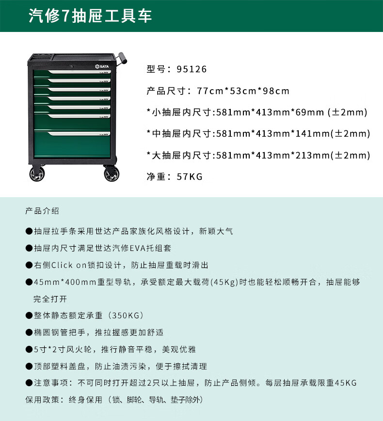 SATA tool storage cabinet workbench 95125 95126 drawer type auto repair tool cart pre-2 drawer 2 door tool cart (27 inches) 95124