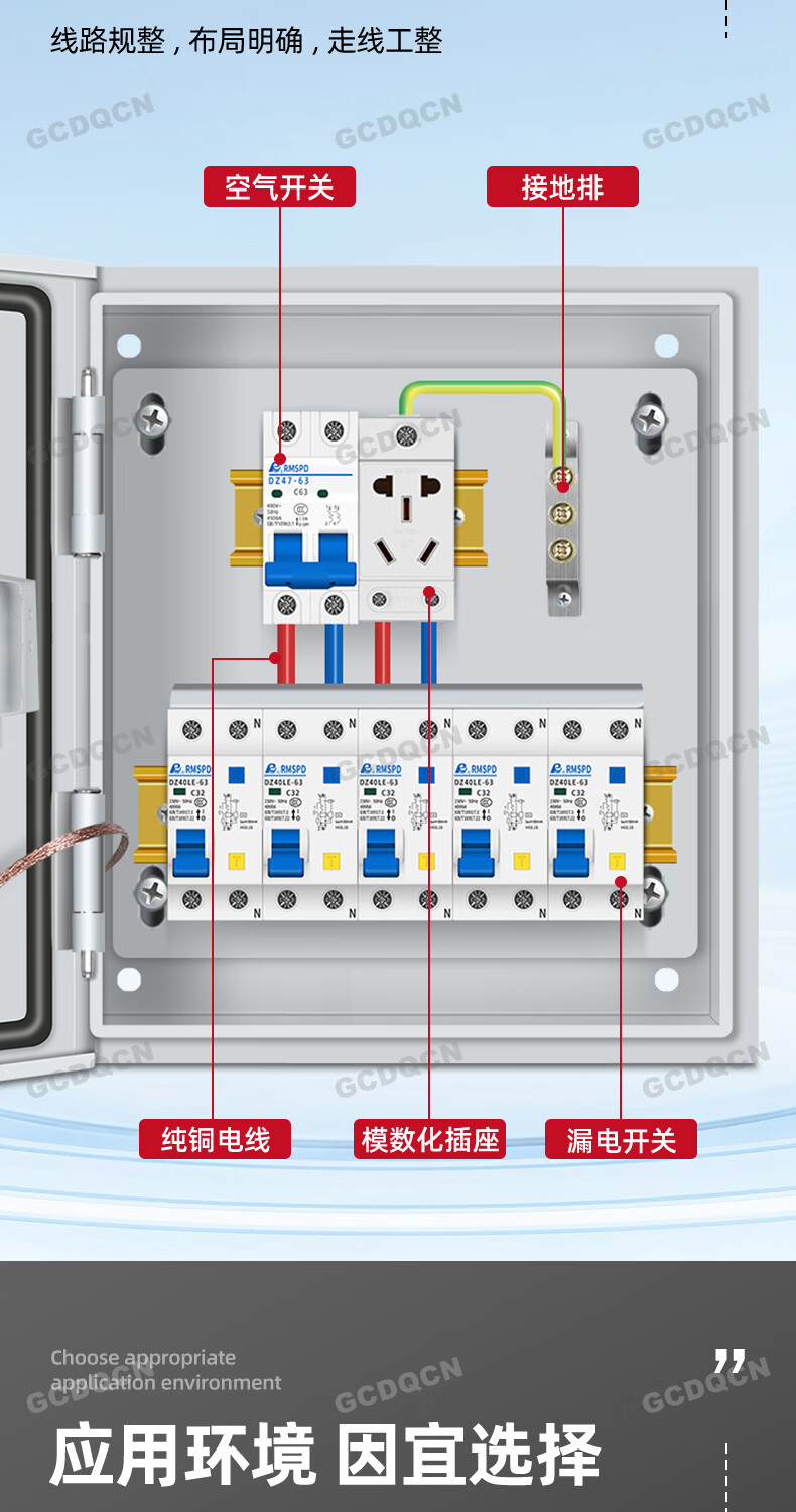 220V household distribution box complete set of leakage protection single entry 63A one in four rental housing socket box one in two out people 0.5 thickness spot