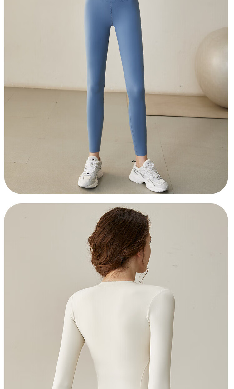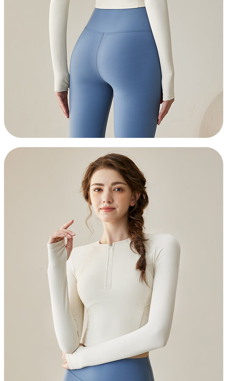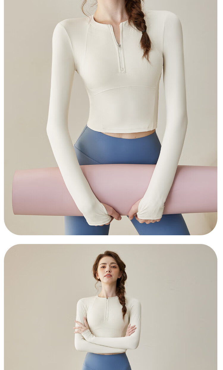 Yuebu beautiful yoga clothing tops for women with chest pads sports fitness clothing Pilates training set 2025 new long-sleeved summer milk white long-sleeved half-zip S