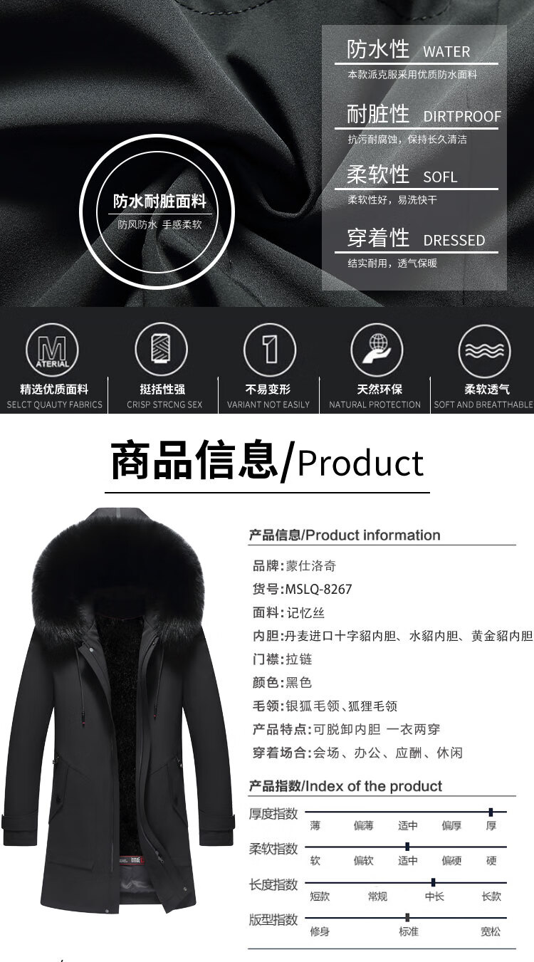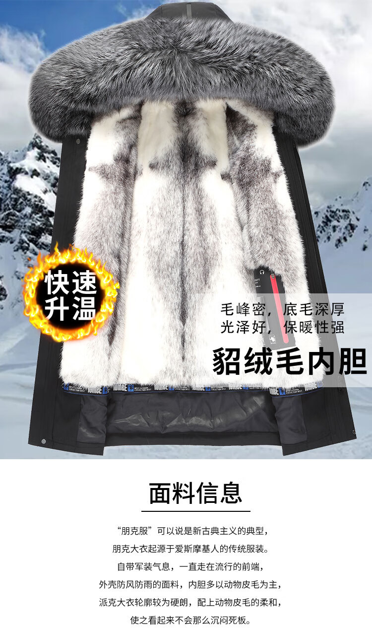 CHEVALPES international first-line brand 2025 new parka men's winter mink liner medium and long fur one-piece mink B style black fox fur collar + gold mink liner M 170 recommended 100-130 Jin Jin equals 0.5 kg