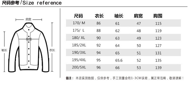China (cm) 165 / 88-90 170 / 96-98 175 / 108-110 180 / 118-122 185 / 126-130