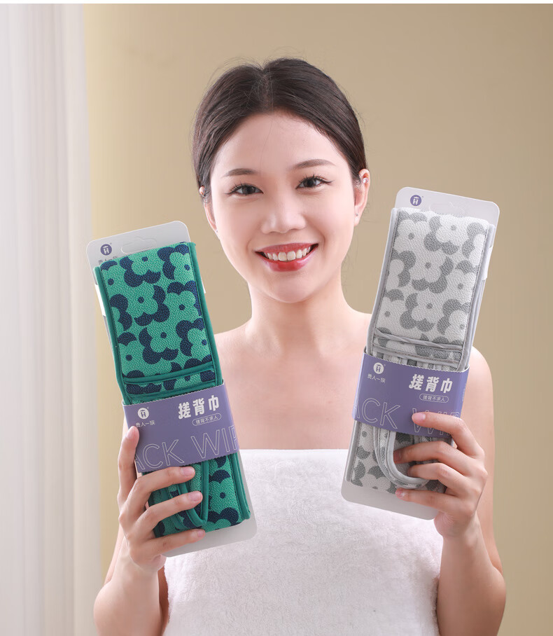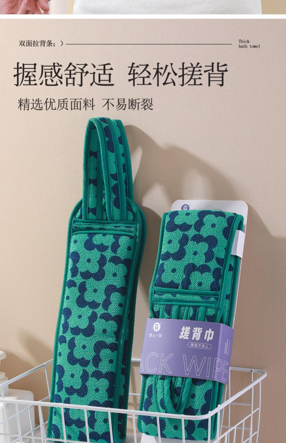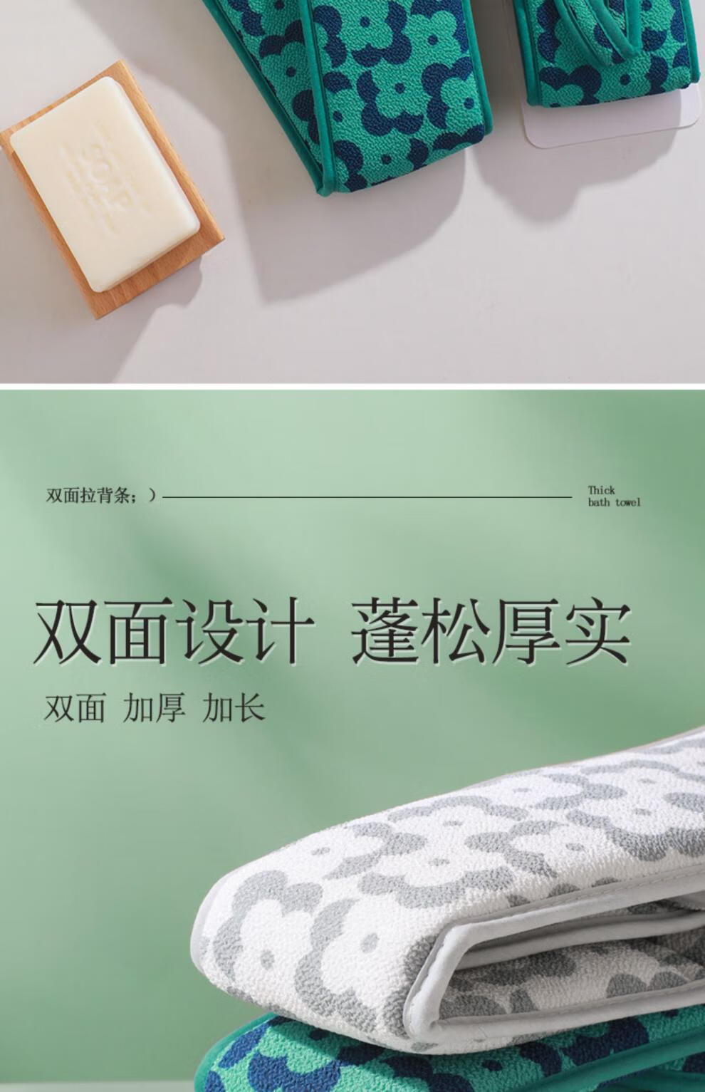 Xi'er double-sided bath towel, back rub towel, back strip, men's and women's back rub, decontamination and mud rub, household long back bath towel, gray, extended and thickened back rub strip