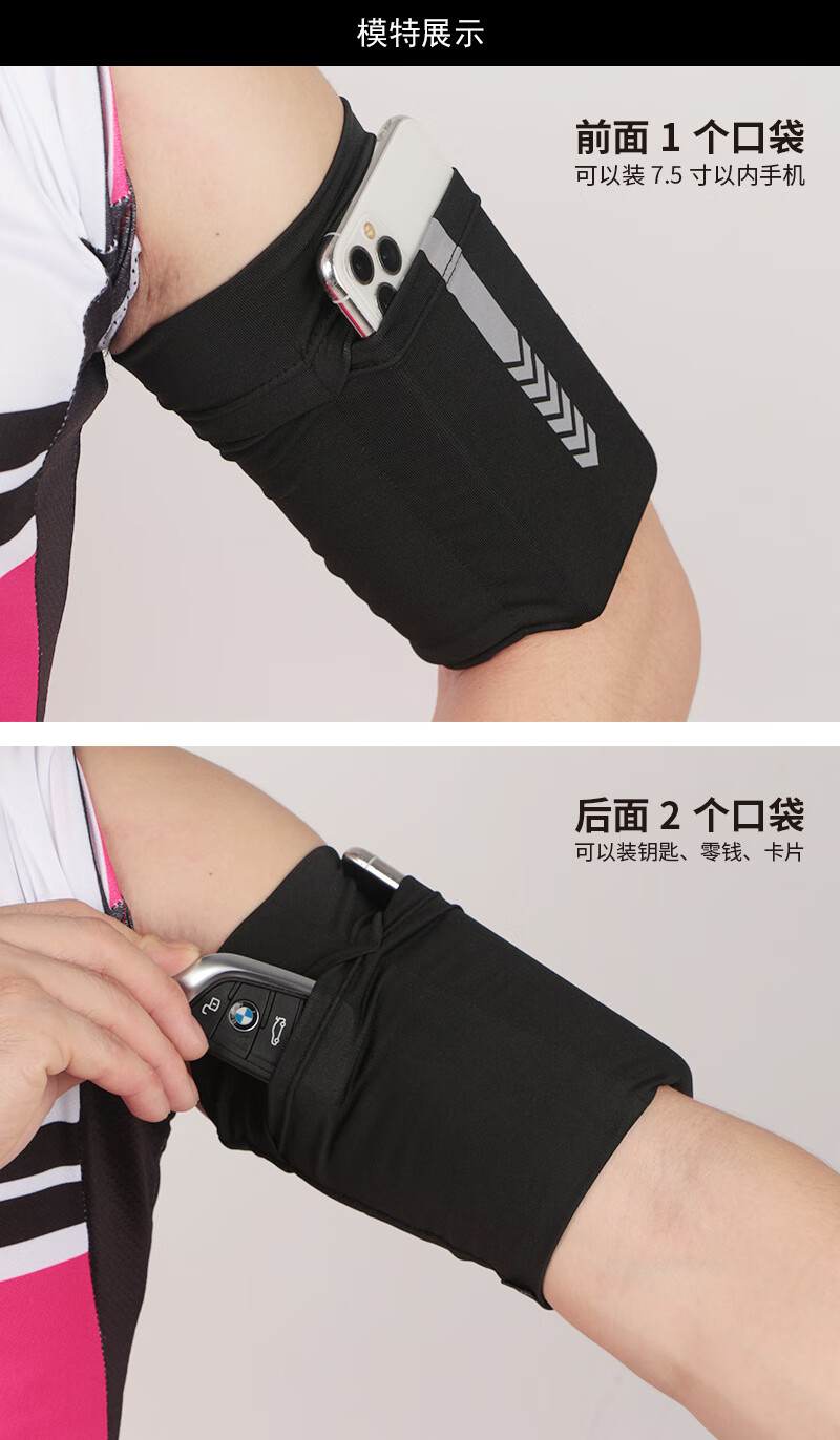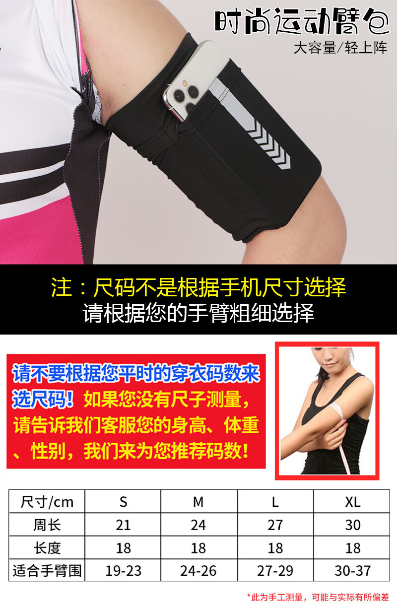 Running arm strap, cycling arm bag, sports arm strap, elastic arm bag, outdoor hiking arm bag, large capacity mobile phone bag, black S