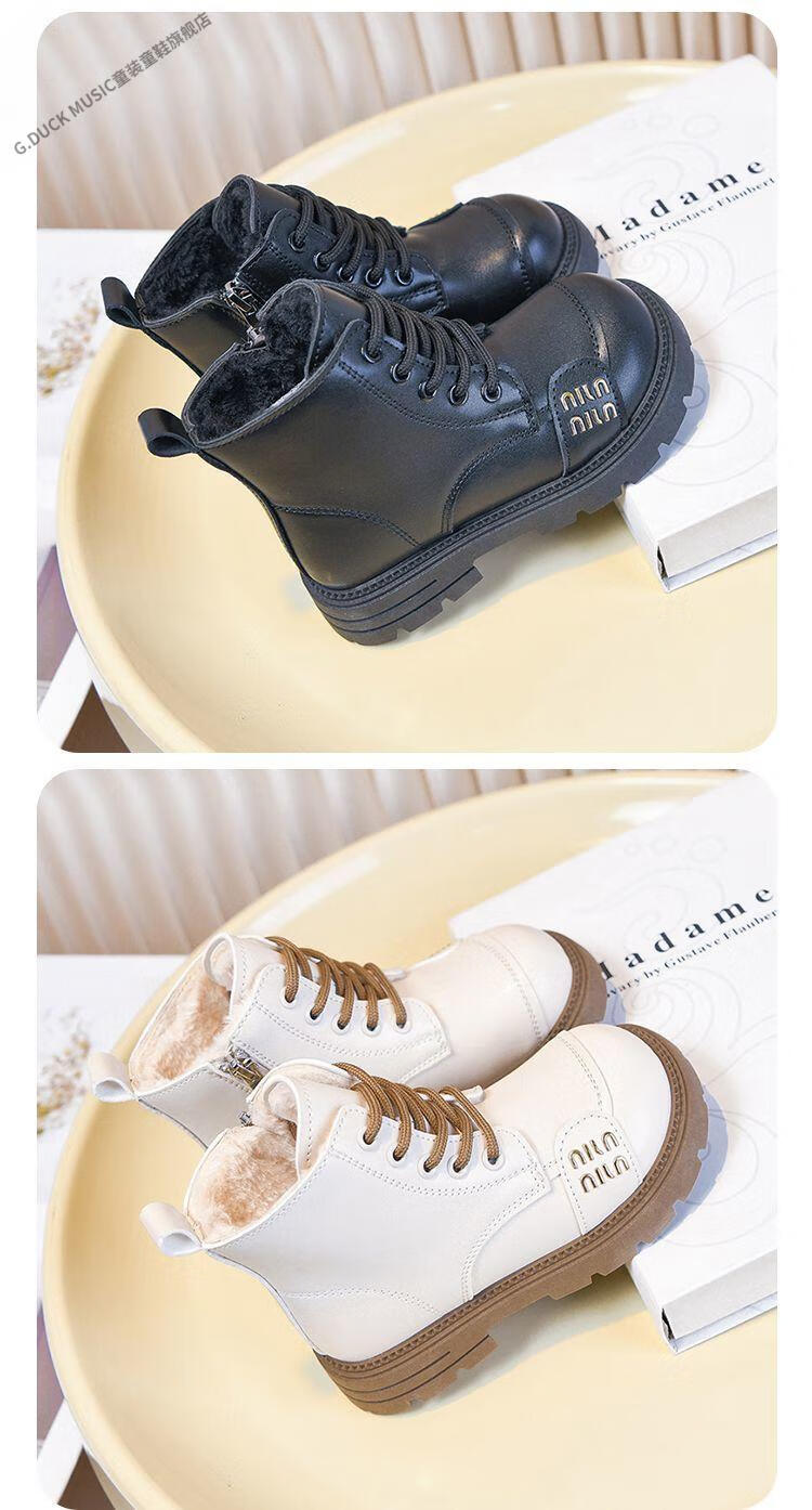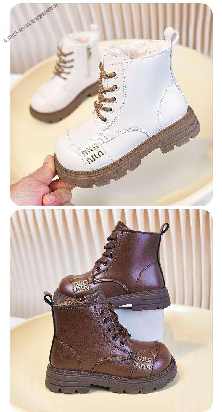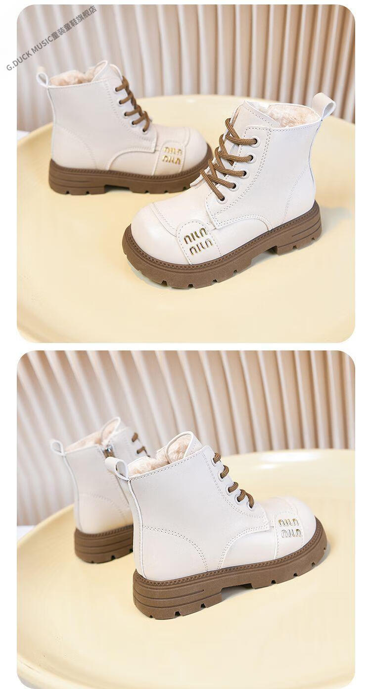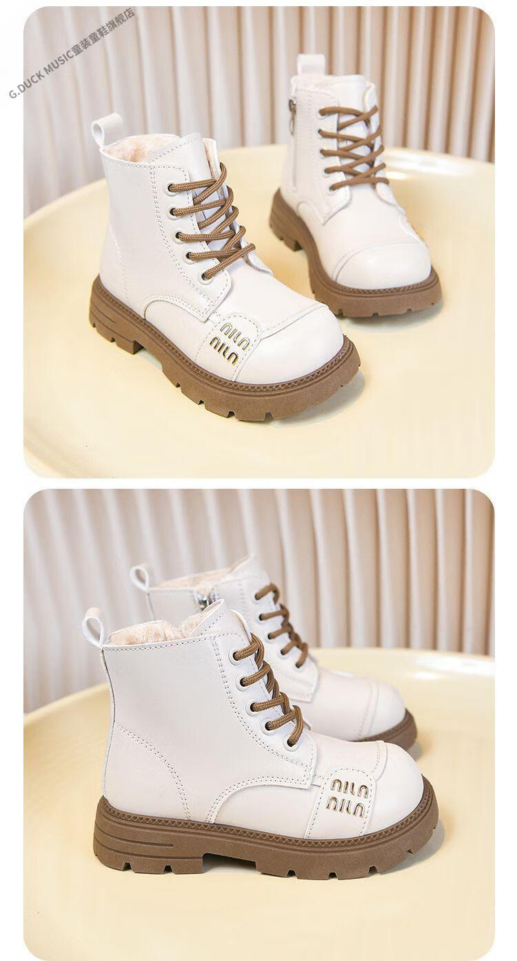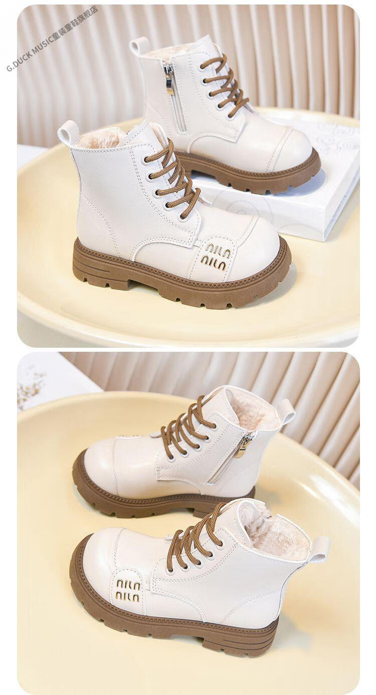 G.duck Little Yellow Duck Girls' Boots Children's Martin Boots 2025 Autumn and Winter Short Boots Plus Velvet Boots for Men and Women Medium and Large Children's Leather Boots 219 Beige Cotton Boots Upgraded Version 35 Inner Length About 21.6cm
