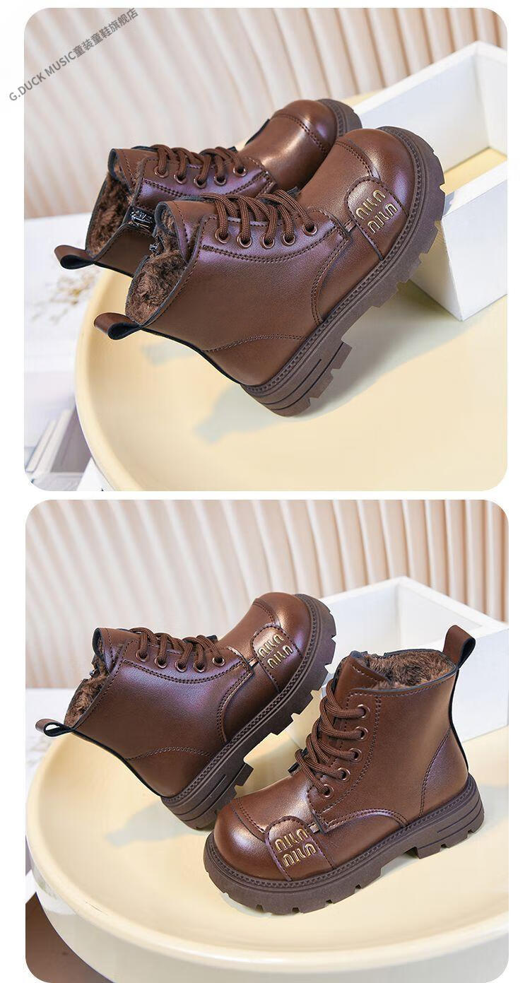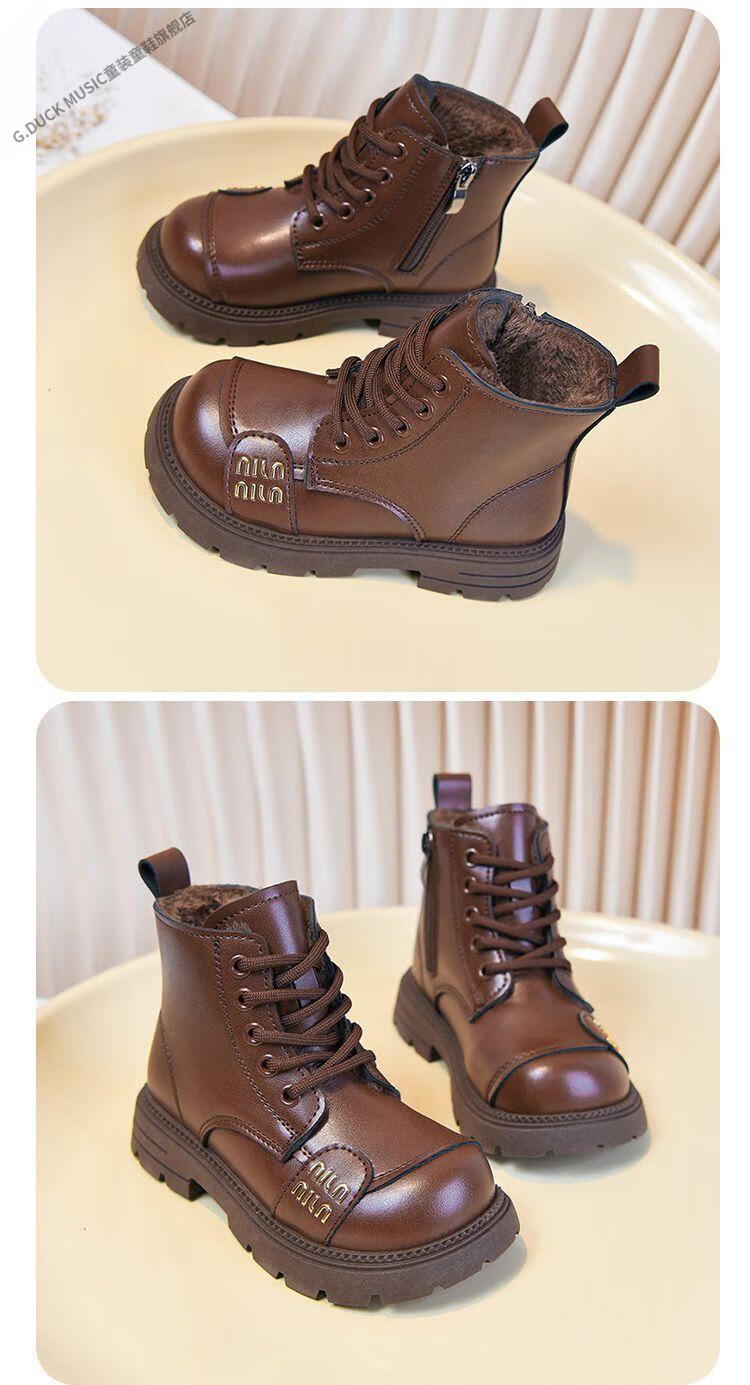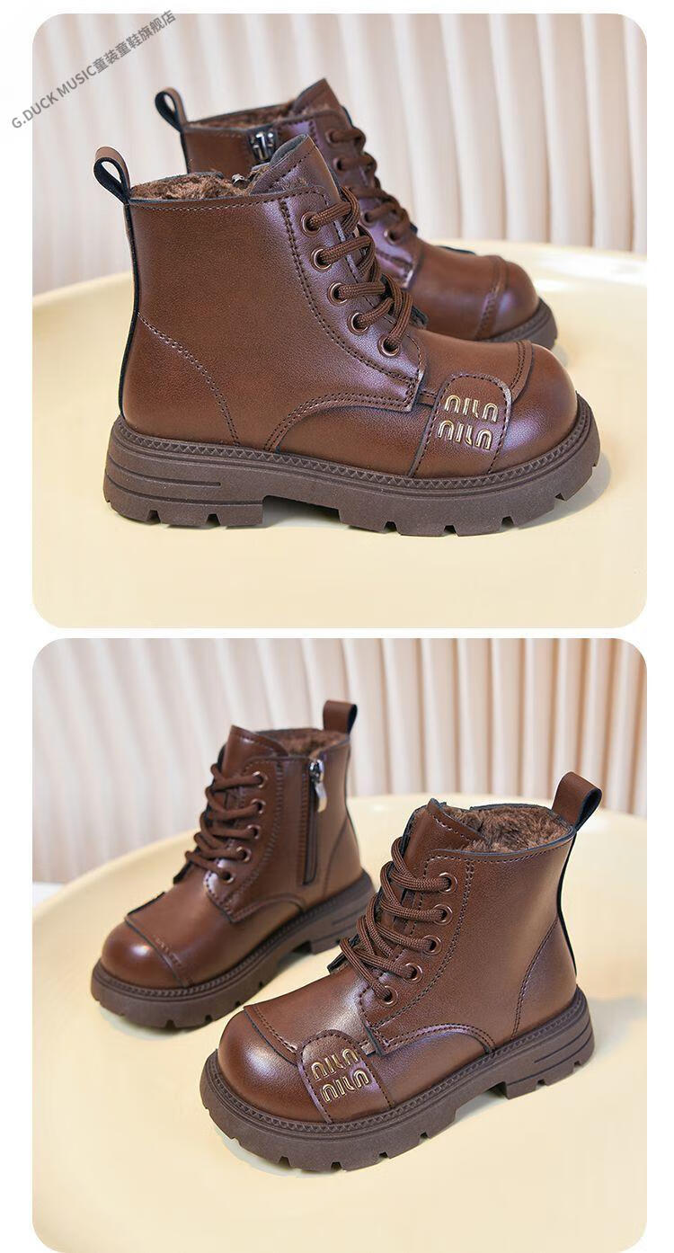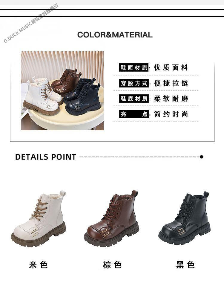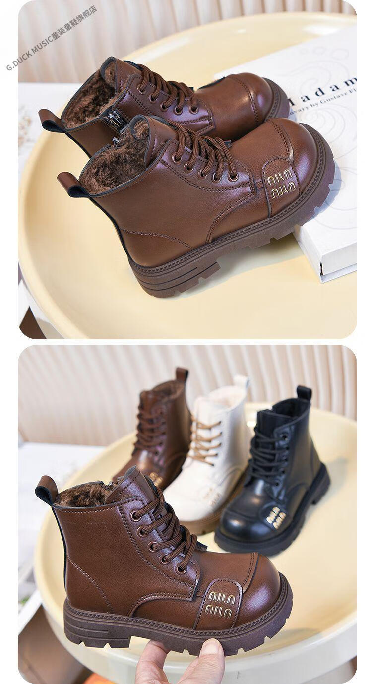 G.duck Little Yellow Duck Girls' Boots Children's Martin Boots 2025 Autumn and Winter Short Boots Plus Velvet Boots for Men and Women Medium and Large Children's Leather Boots 219 Beige Cotton Boots Upgraded Version 35 Inner Length About 21.6cm