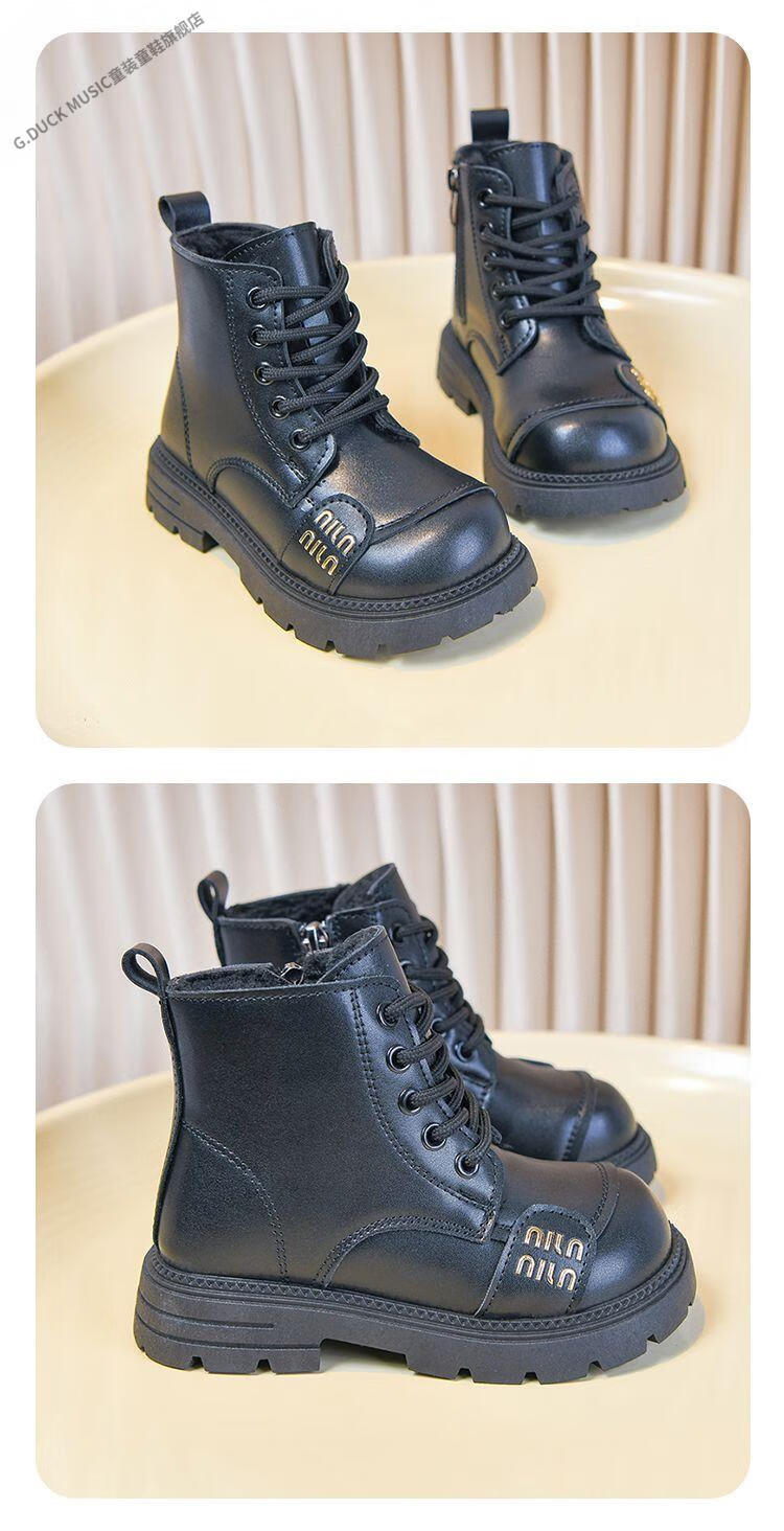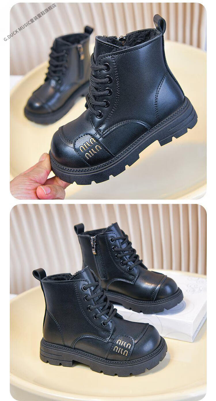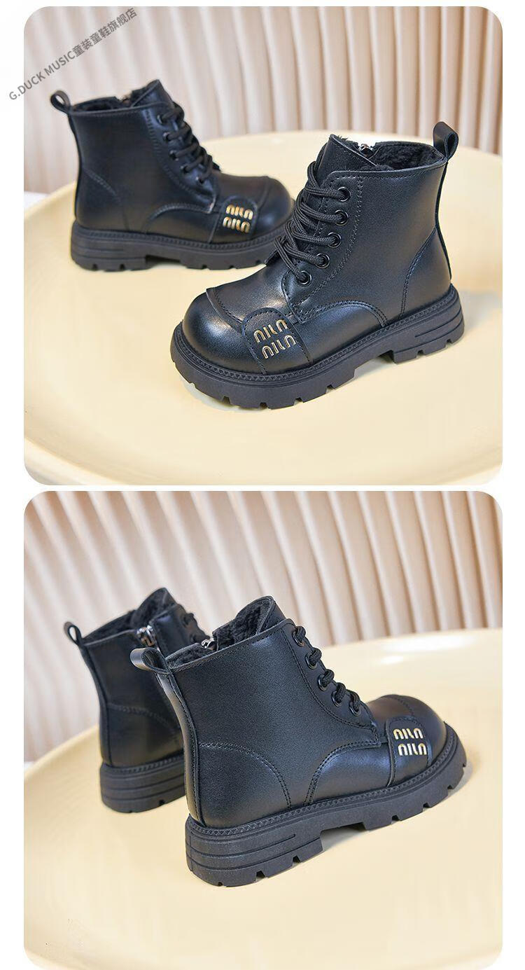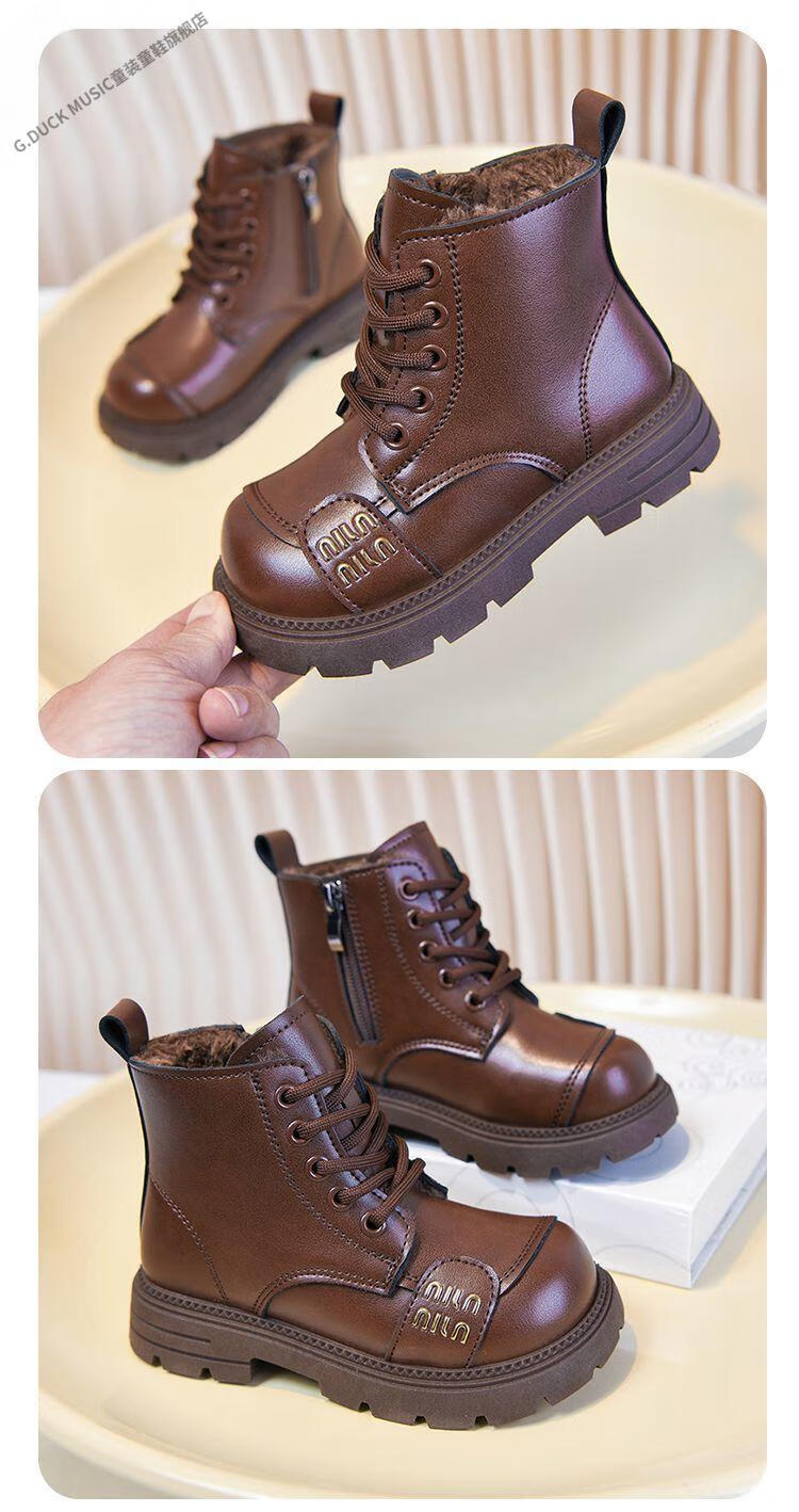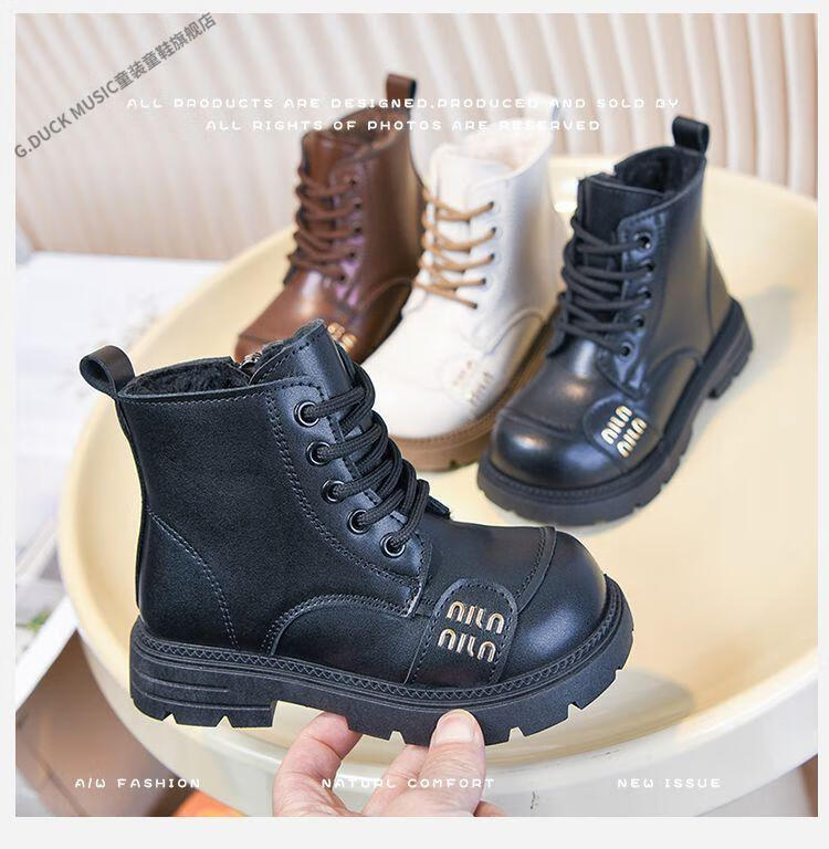 G.duck Little Yellow Duck Girls' Boots Children's Martin Boots 2025 Autumn and Winter Short Boots Plus Velvet Boots for Men and Women Medium and Large Children's Leather Boots 219 Beige Cotton Boots Upgraded Version 35 Inner Length About 21.6cm
