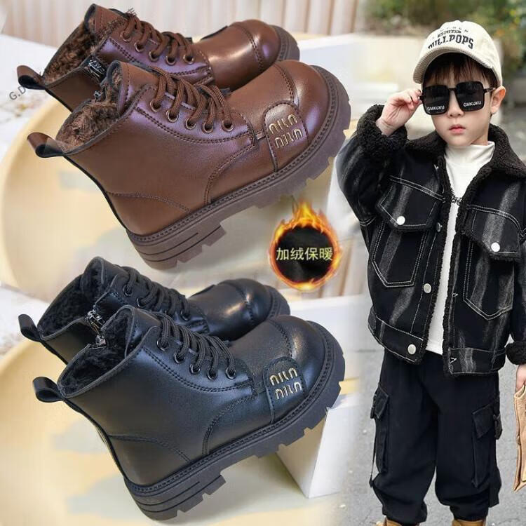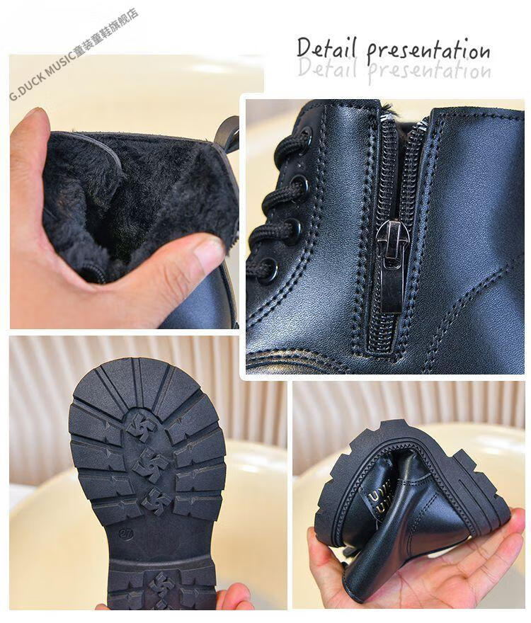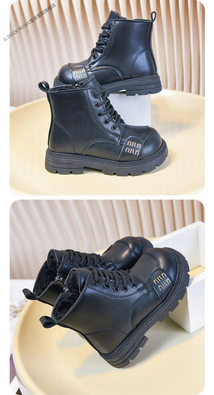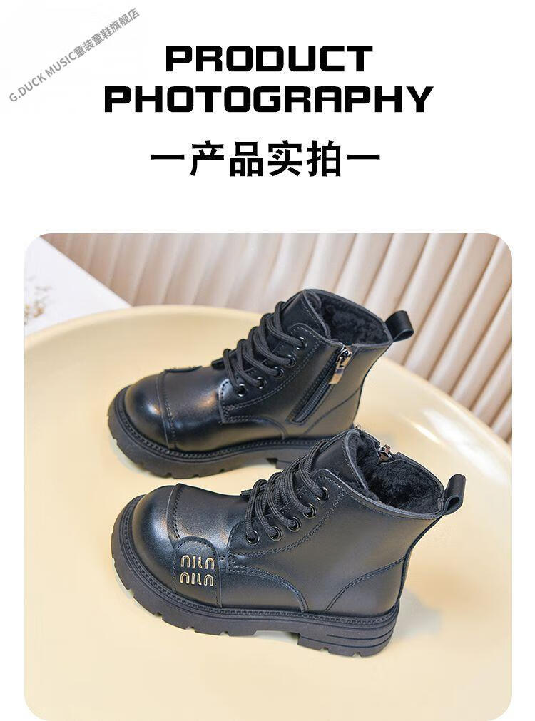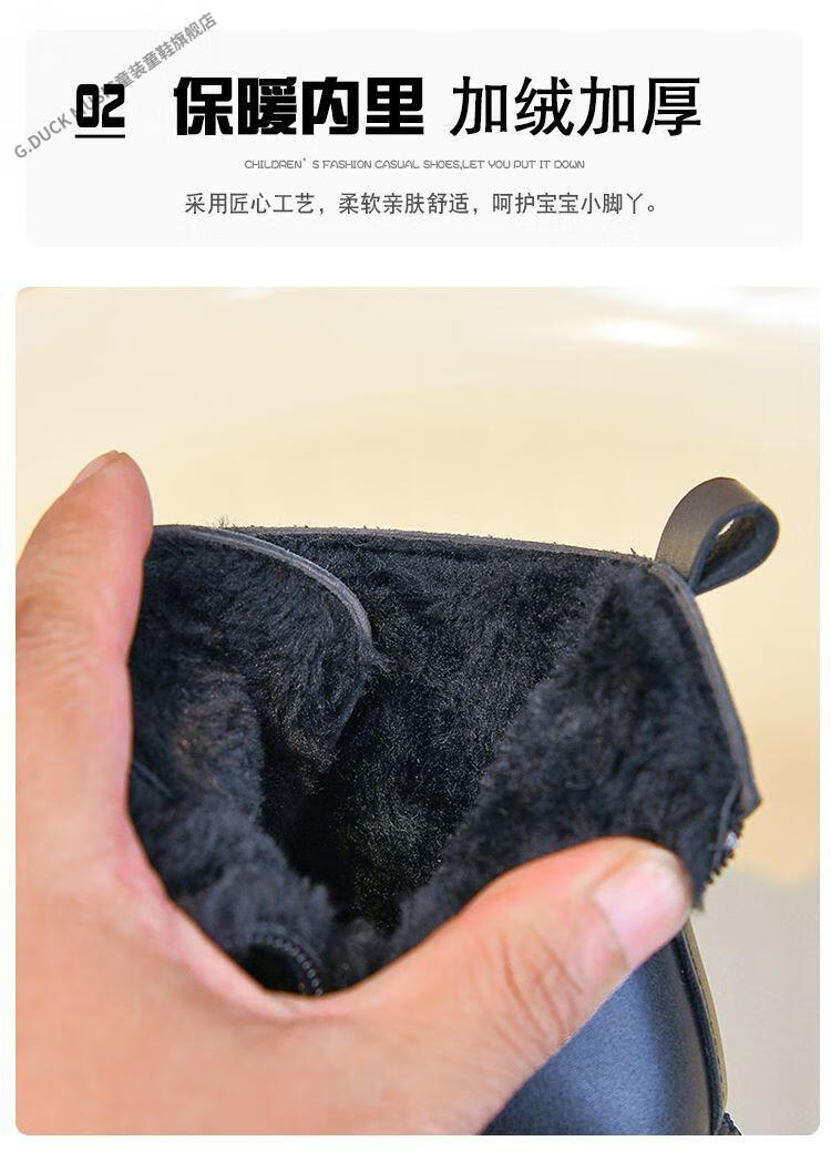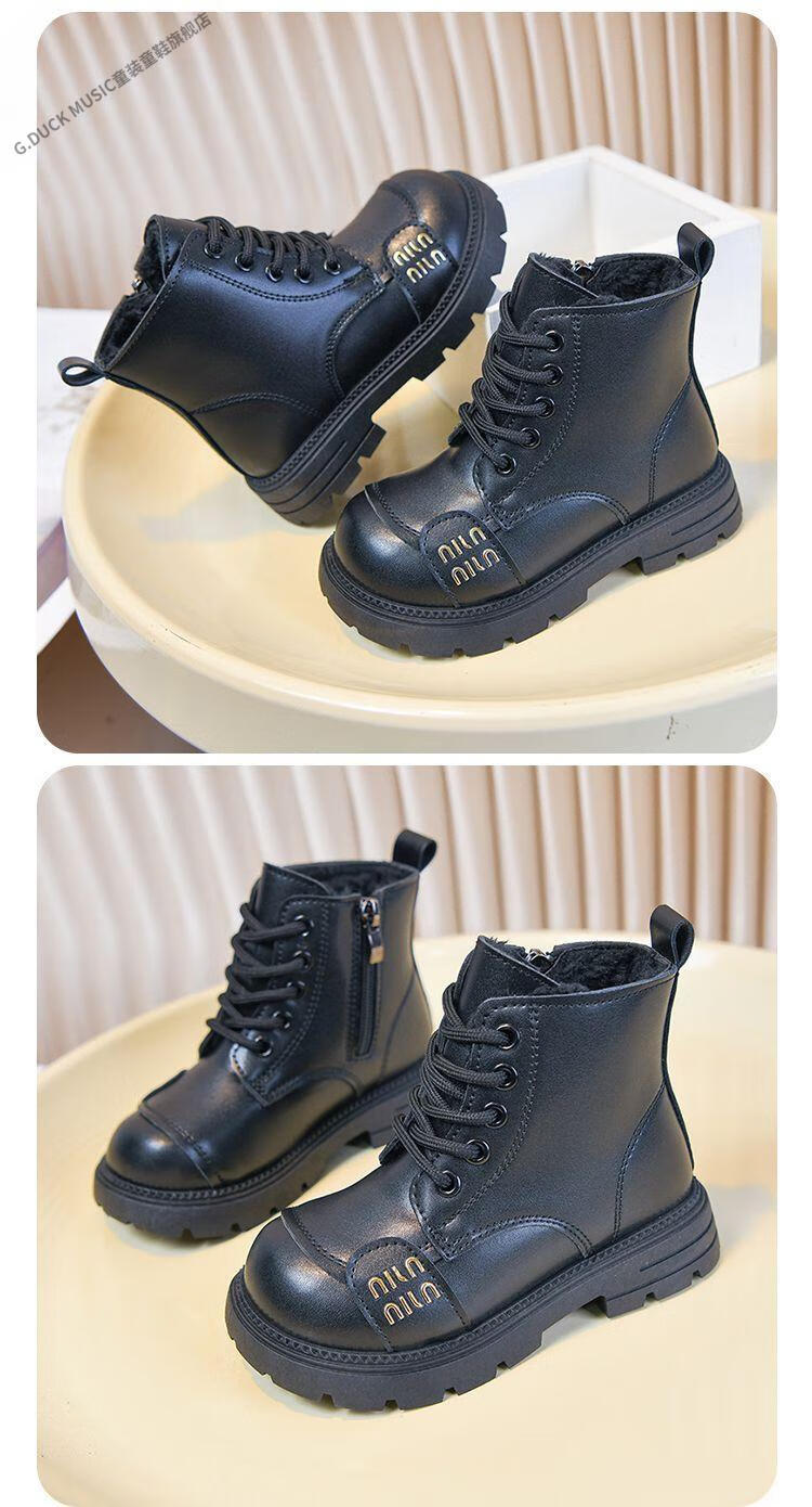 G.duck Little Yellow Duck Girls' Boots Children's Martin Boots 2025 Autumn and Winter Short Boots Plus Velvet Boots for Men and Women Medium and Large Children's Leather Boots 219 Beige Cotton Boots Upgraded Version 35 Inner Length About 21.6cm