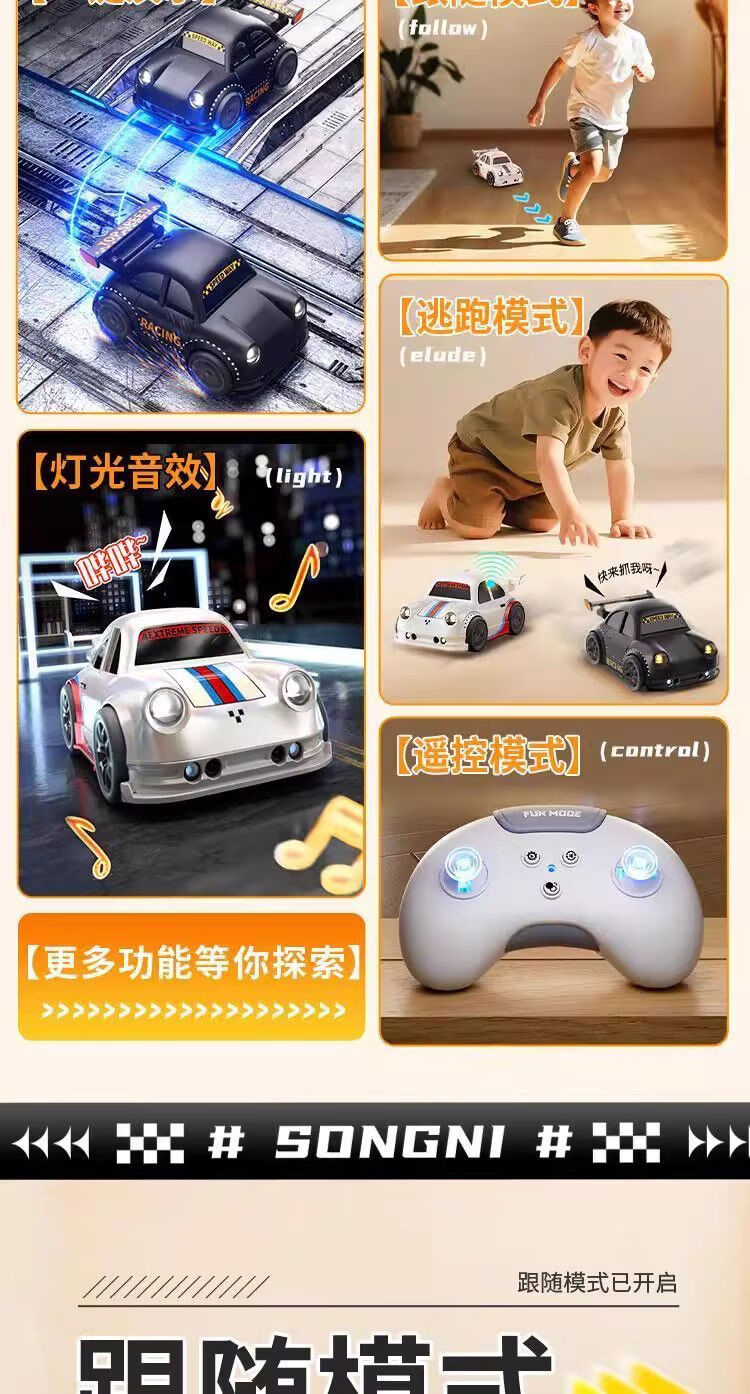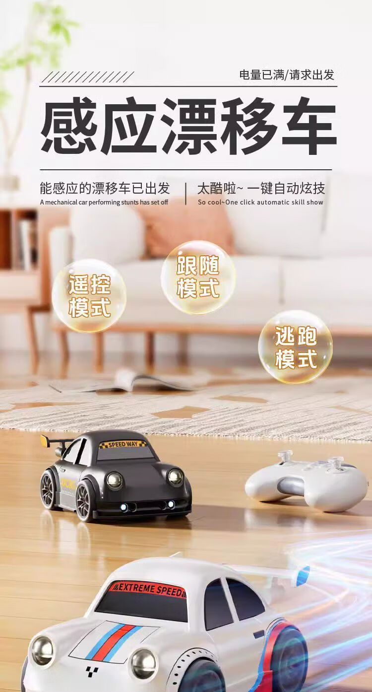 Intelligent induction following remote control car children's mini toy car racing electric four-wheel drive high-speed drift car model pearl white remote control + dodge + follow + drift standard