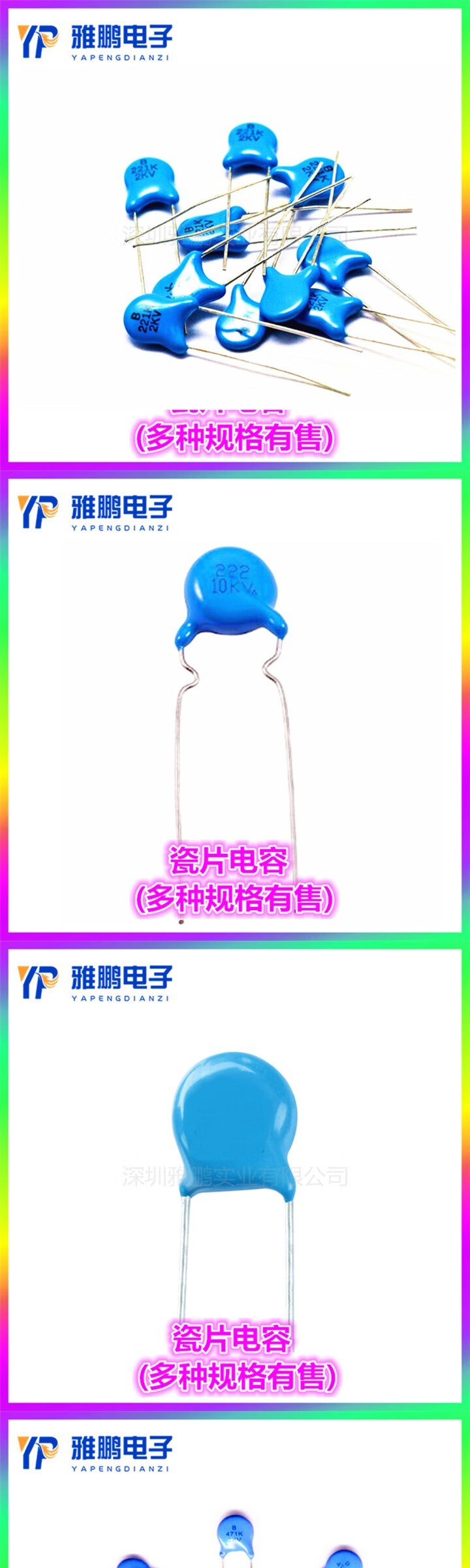 Direct plug high voltage ceramic capacitor 2KV 101 102 151 152C 221 222 470 471 561 2KV-22NF(223) 1000PCS