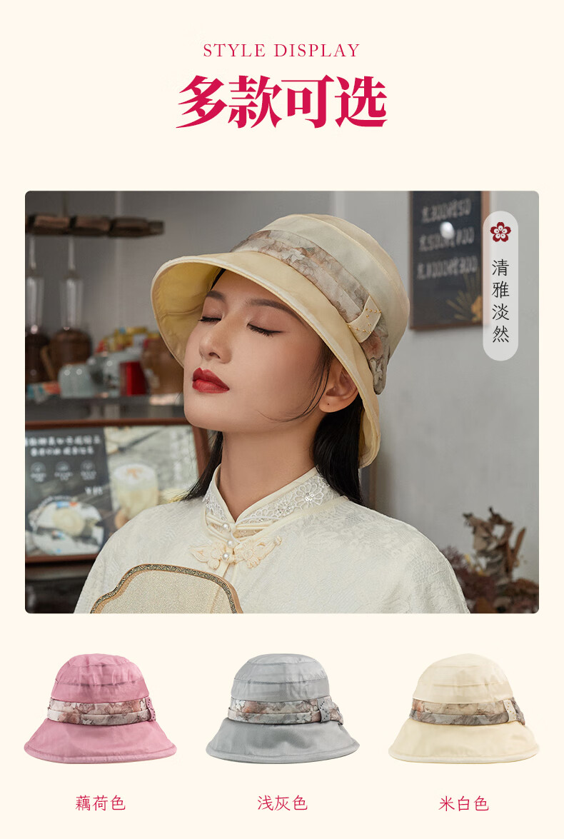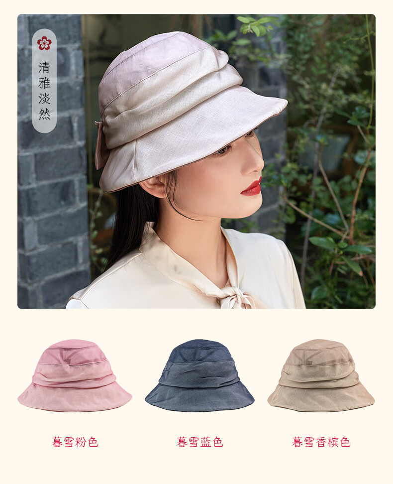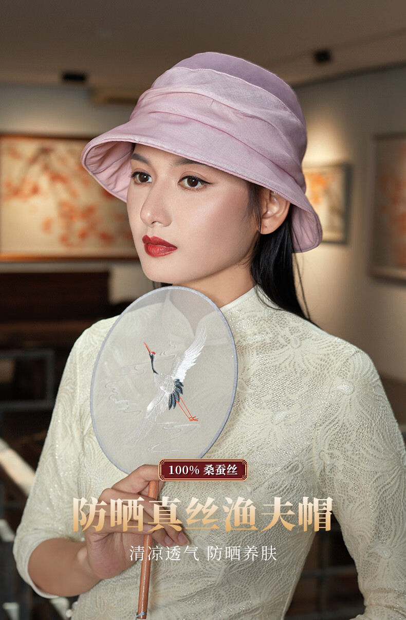 Shanghai Story 2025 Spring and Summer Fisherman Hat Women's Sun Shade Sun Protection UV Large Head Circumference Gift Box Muxue Pink One Size_Adjustable