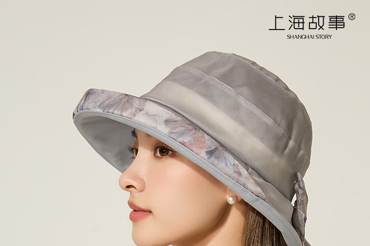 Shanghai Story 2025 Summer New Sun Protection Hat Women's Sun Protection Hat Silk Breathable Fisherman Hat Gift Box Light Dream-Grey