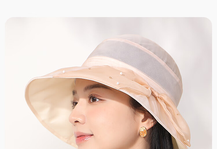 Shanghai Story 2025 new summer style large-brimmed fisherman's hat for women, versatile sunshade and sun protection basin hat gift box with dew beads - beige