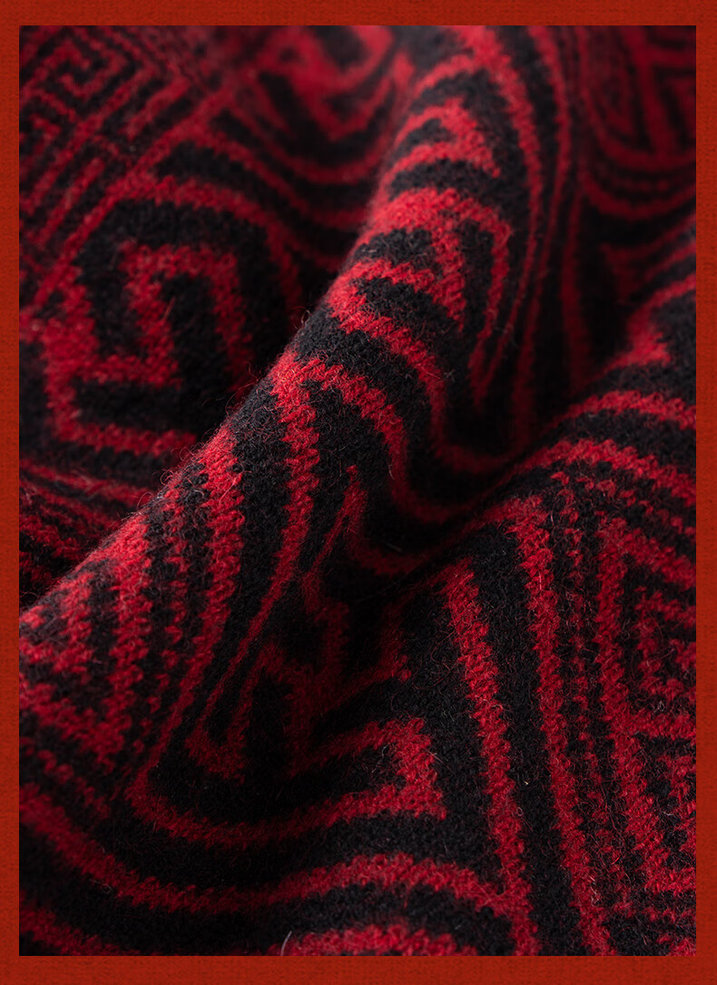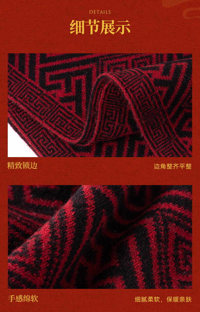 Shanghai Story Palace Co-branded Shanghai Story autumn and winter new wool scarf men's knitted velvet scarf for elders gift box black and red