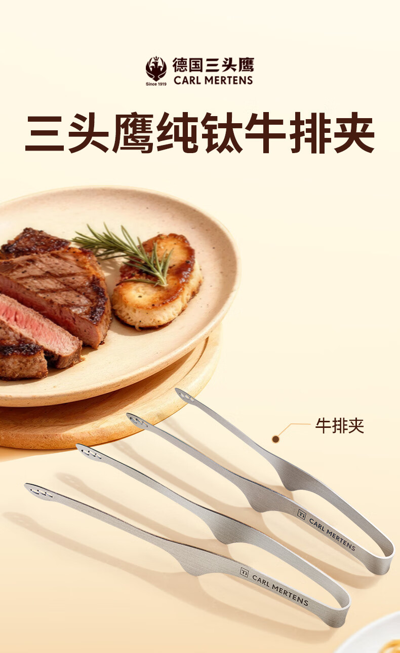 Three-headed eagle pure titanium steak clip home kitchen outdoor camping travel barbecue barbecue anti-scalding food clip pure titanium steak clip