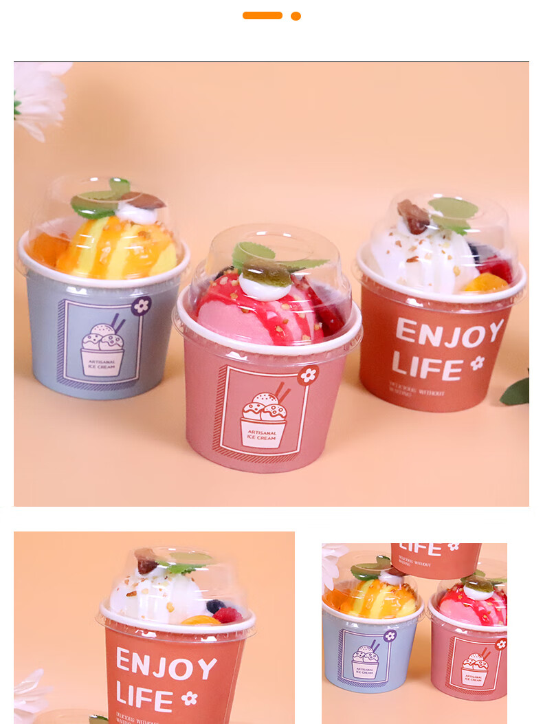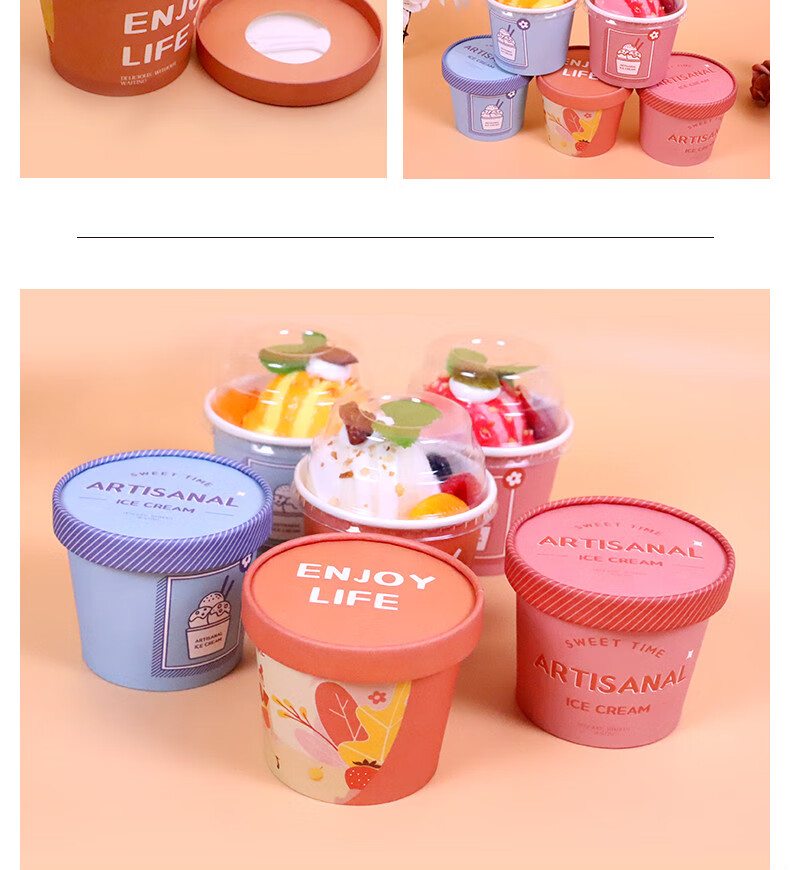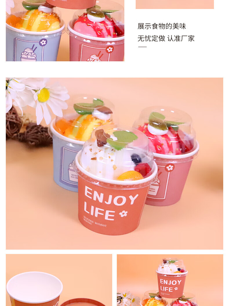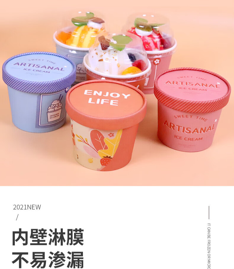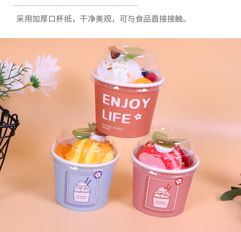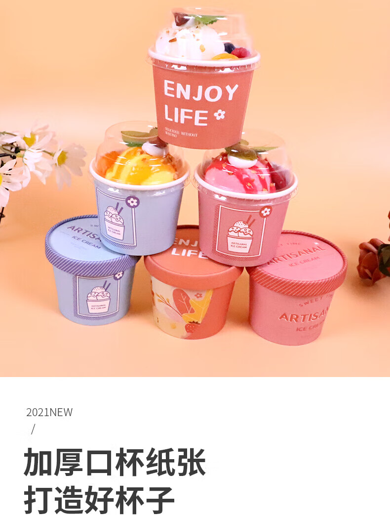 RSRDDY ice cream cup disposable pouring paper bowl box yogurt paper cup cartoon ice cream pudding pink yogurt cup paper lid 50 sets