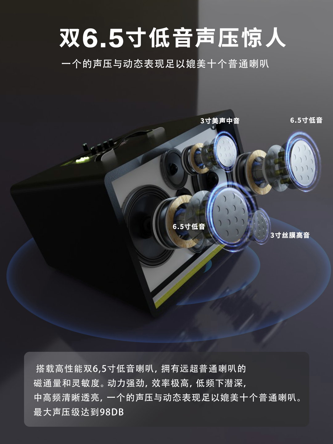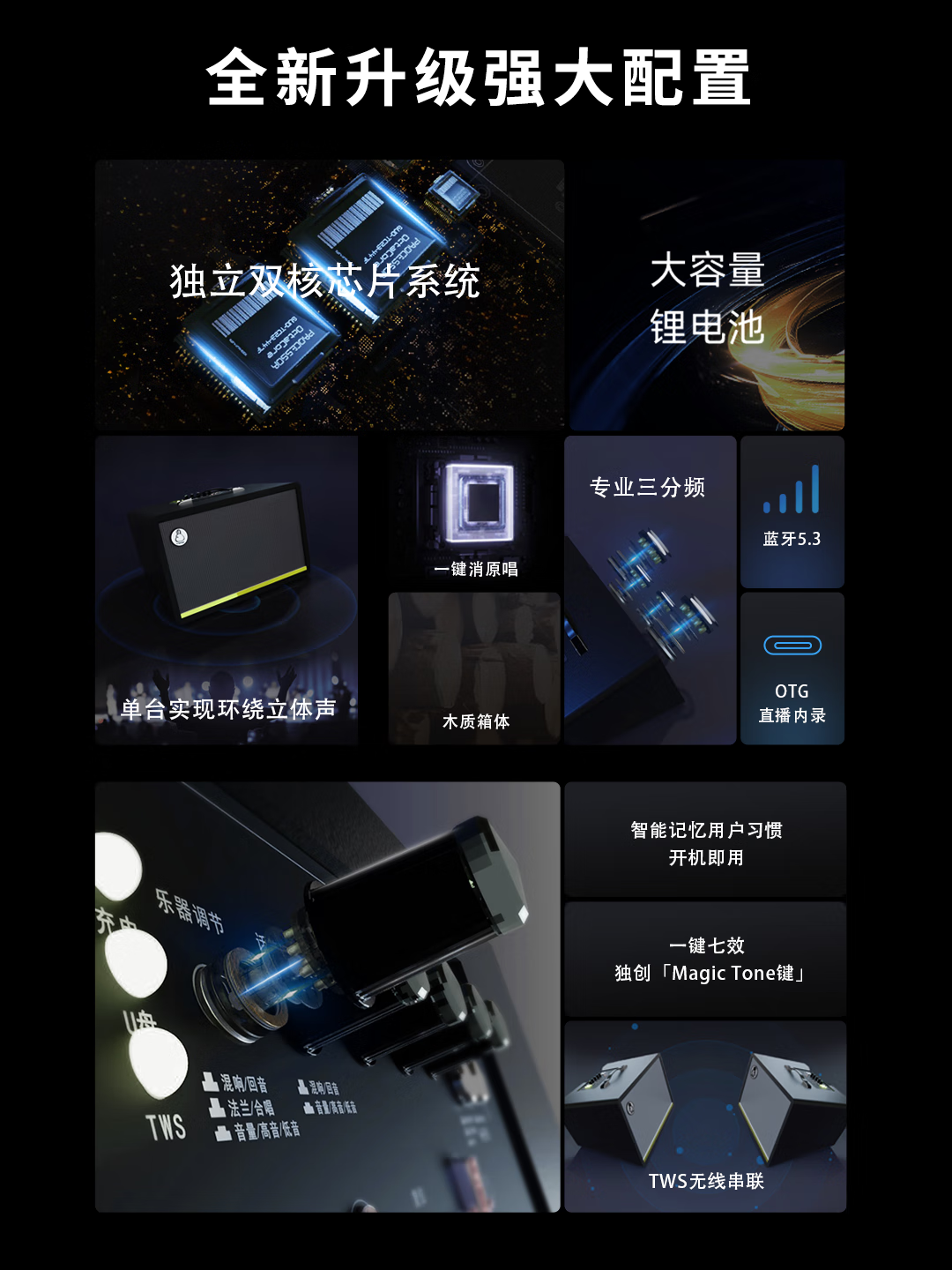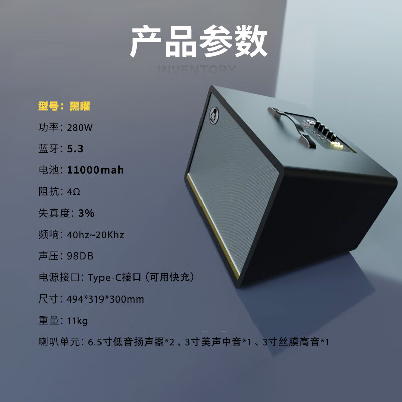 Yamiser Professional Singing Speaker Blue Sound Internal Recording Guitar Outdoor K-Song Live Broadcast Surround High-Power Audio Hot-Selling Gift Subwoofer Rehearsal All-purpose Model - Obsidian K-Singing + Musical Instruments + Live Broadcasting + Listening to Songs + Official Standard Configuration + 2 Wireless
