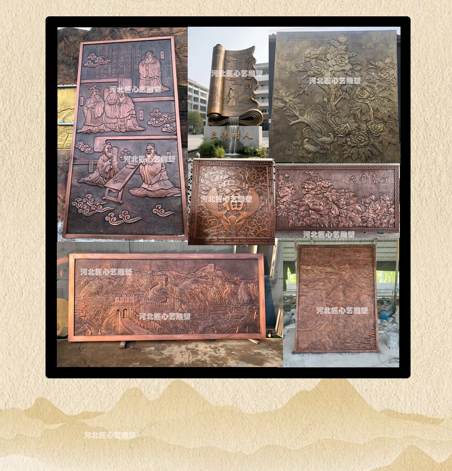 Relief customization manufacturer fiberglass imitation copper forged copper large figure sculpture design ancient modern metal brass sculpture customization of relief