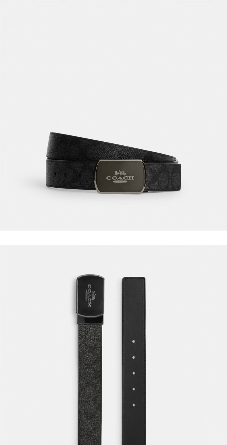 COACH/Coach Men's Patch Buckle Cuttable Reversible Belt, 38MM QB/Charcoal Black/Black