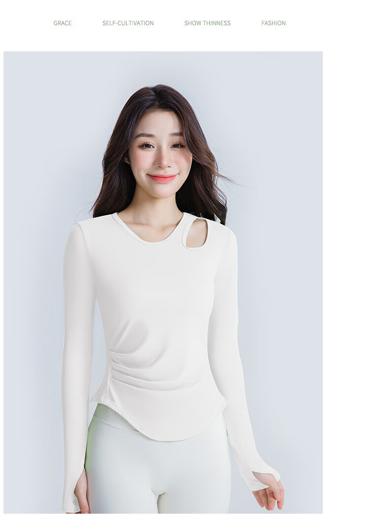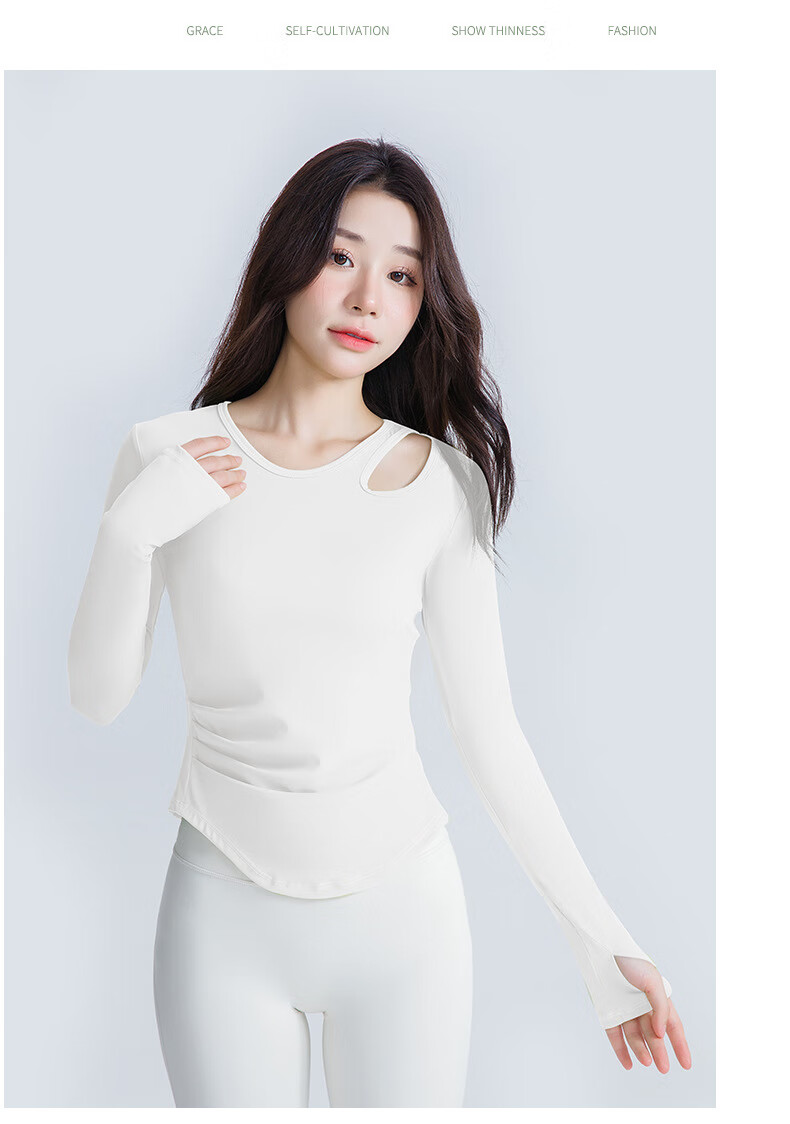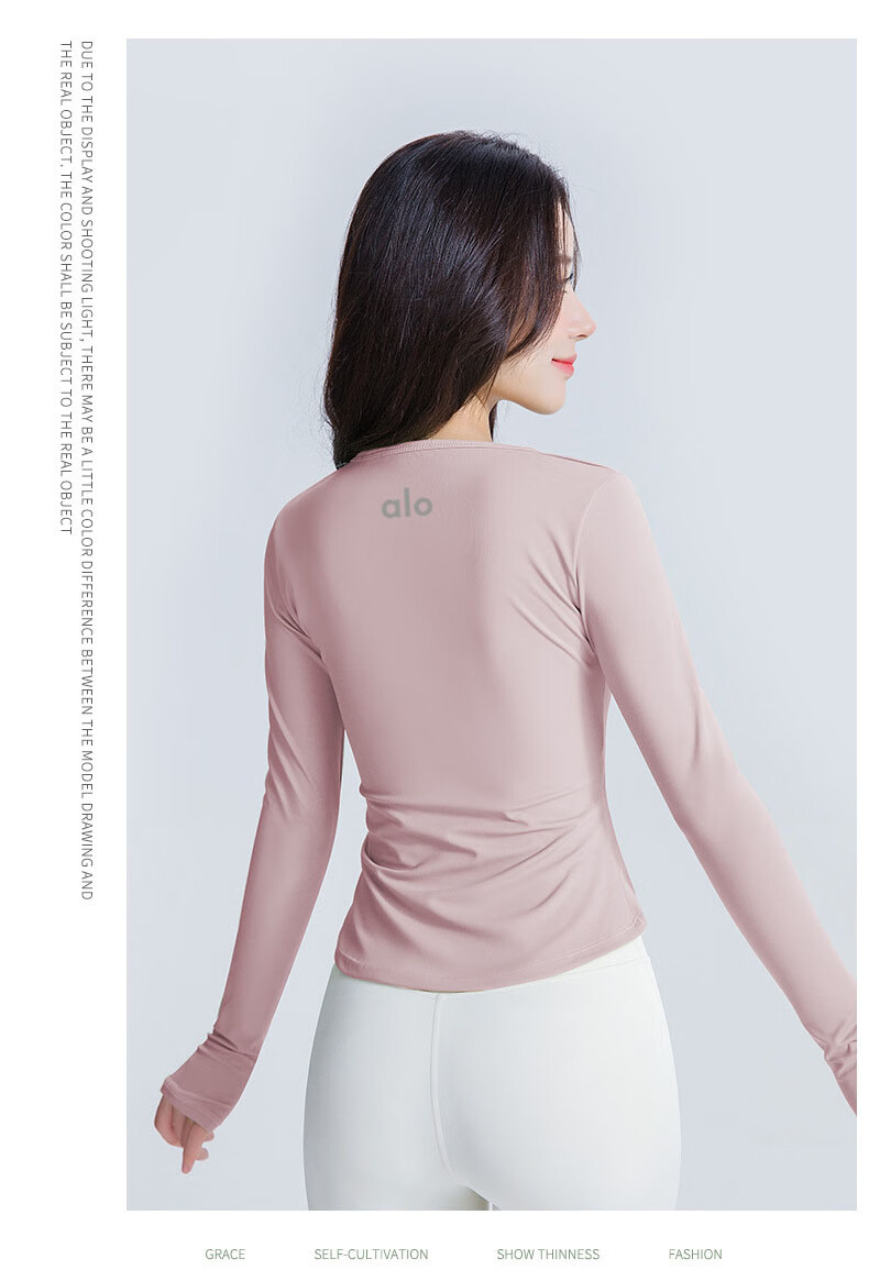 Chengzi alo slim-fitting yoga wear with chest pad, long-sleeved women's spring and autumn Pilates training fitness slimming running sports T-shirt for women white M