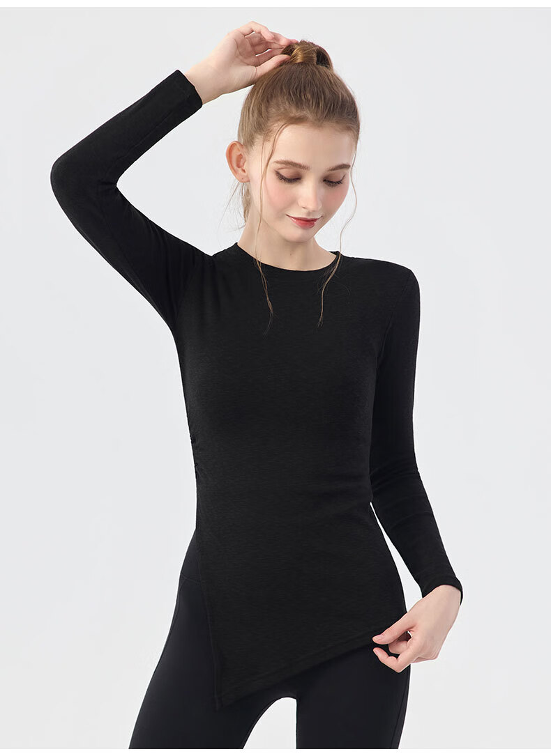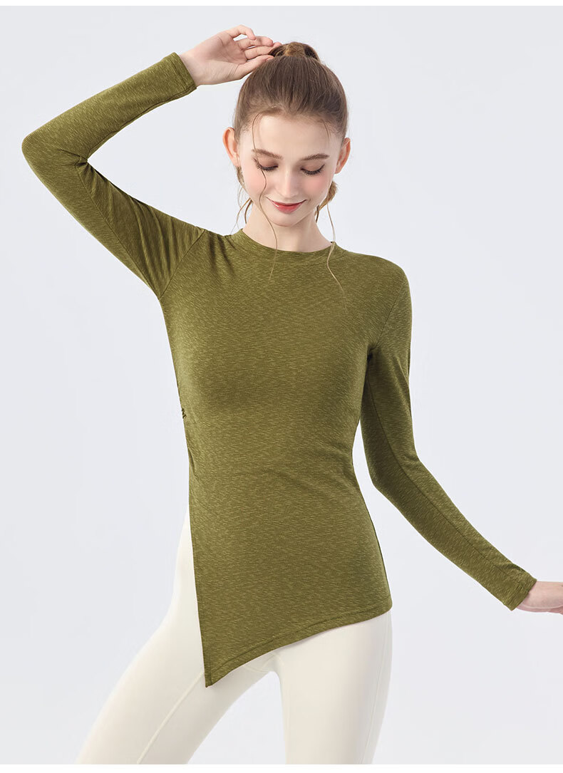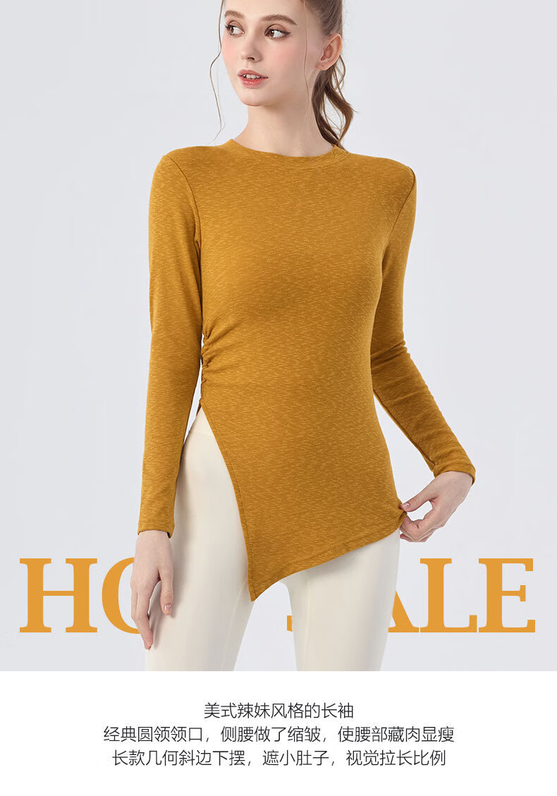 Nude long-sleeved butt-covering yoga wear blouse for women with side slits, loose casual sports Pilates fitness top, bright yellow L