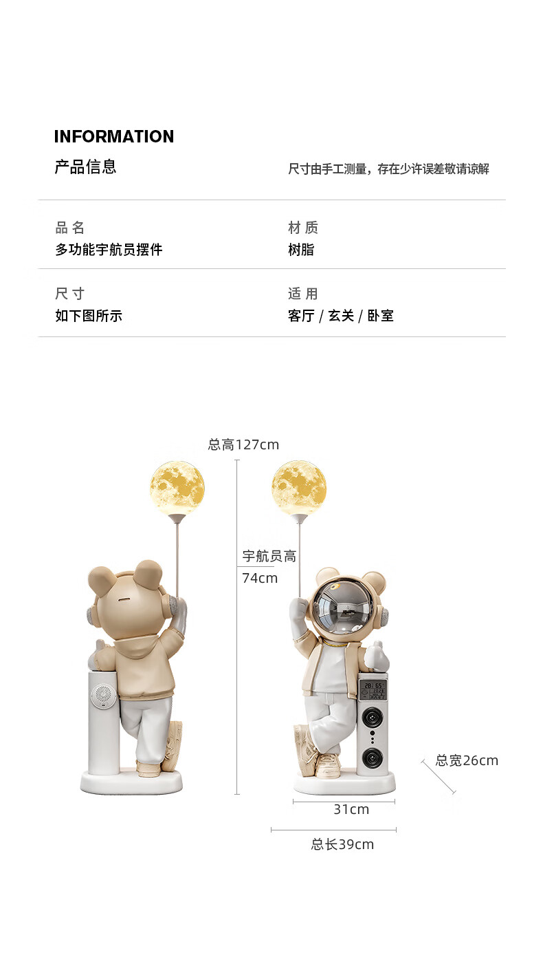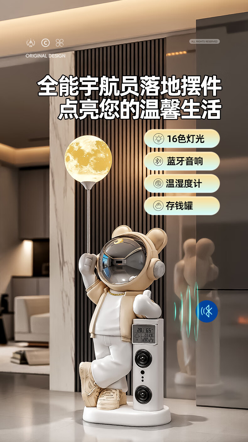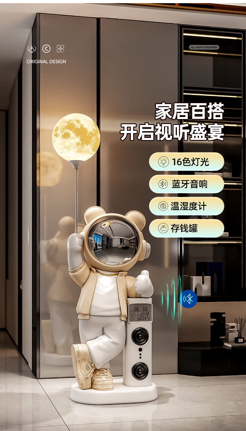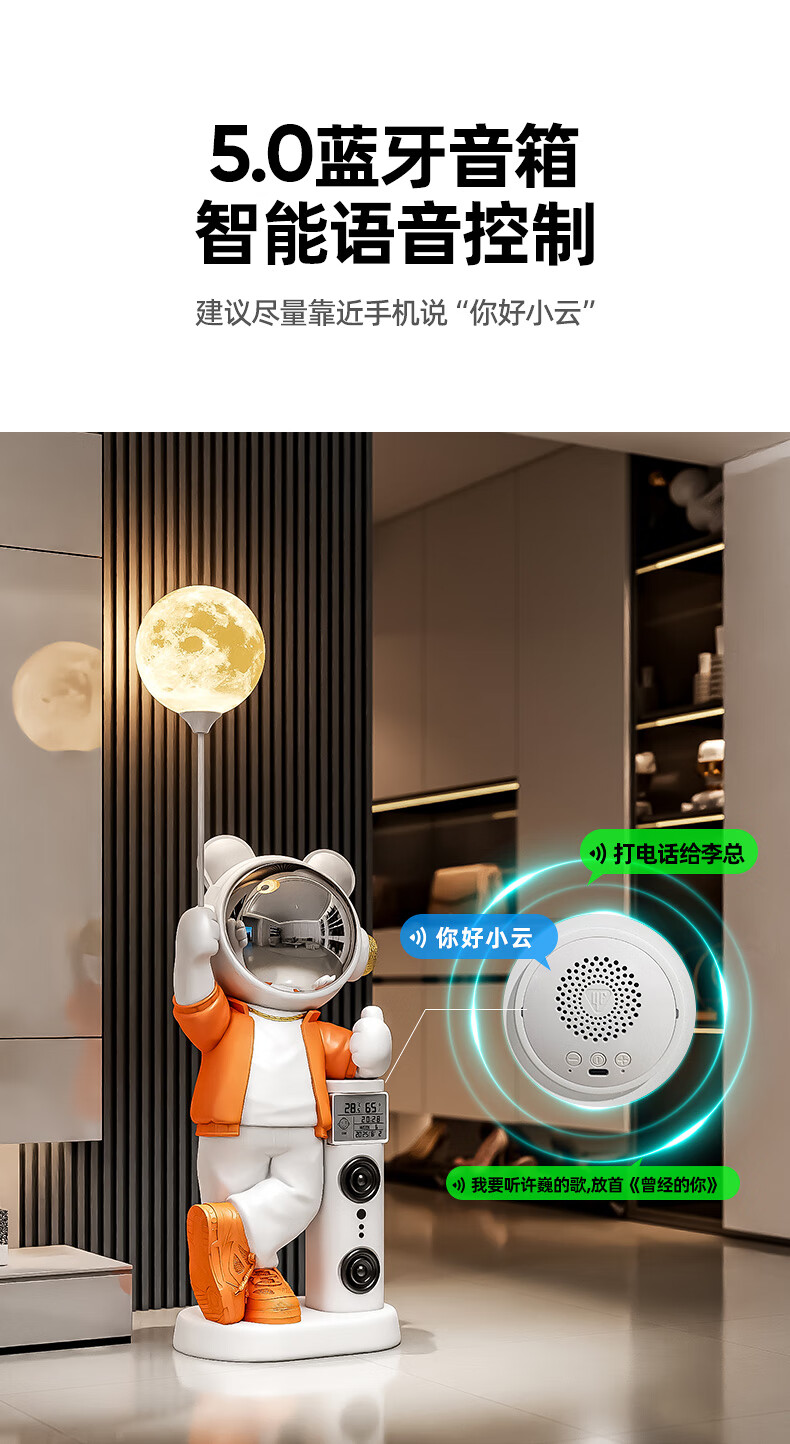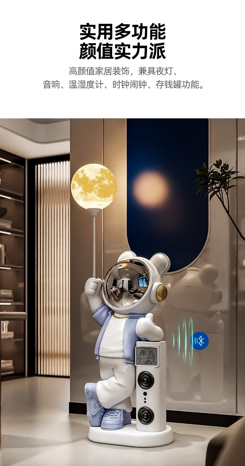 British internet celebrity astronaut astronaut audio living room decoration large floor-standing home entrance entrance 2026 new creative extra large blue upgraded Xiaoai speaker + electronic clock 132CM total height