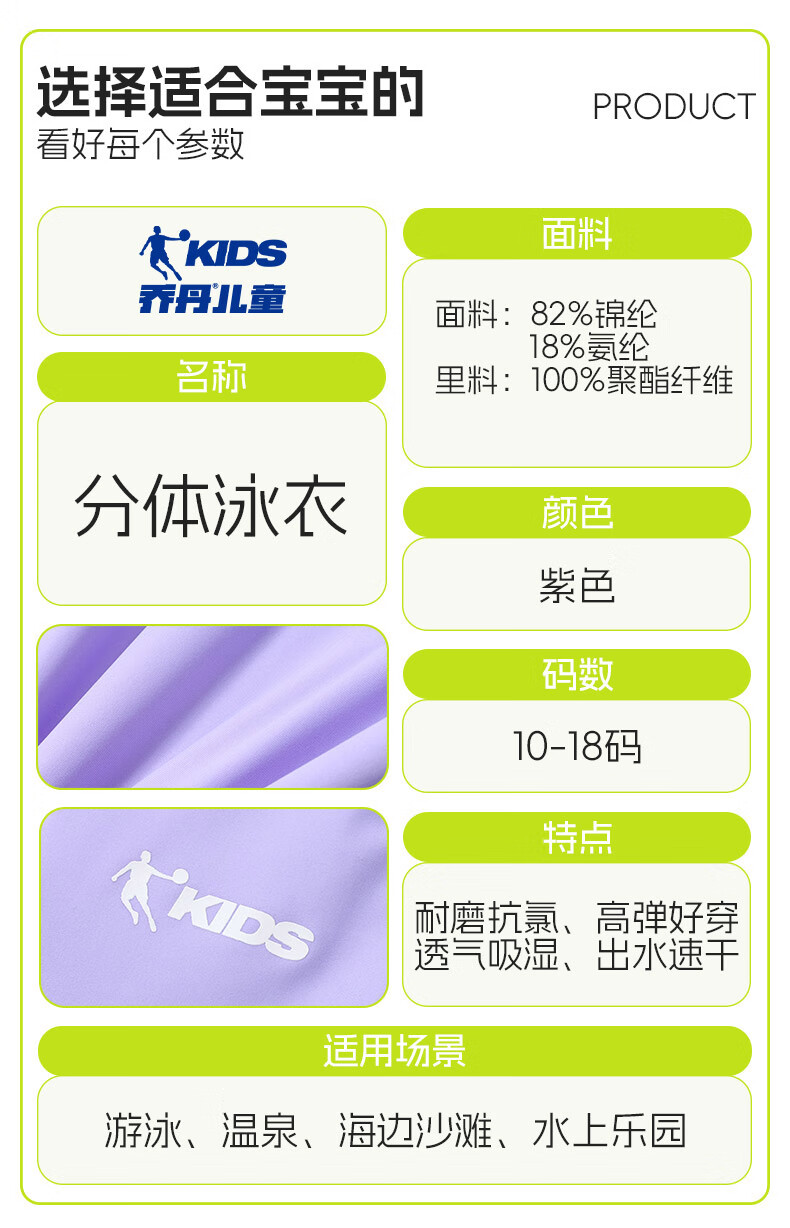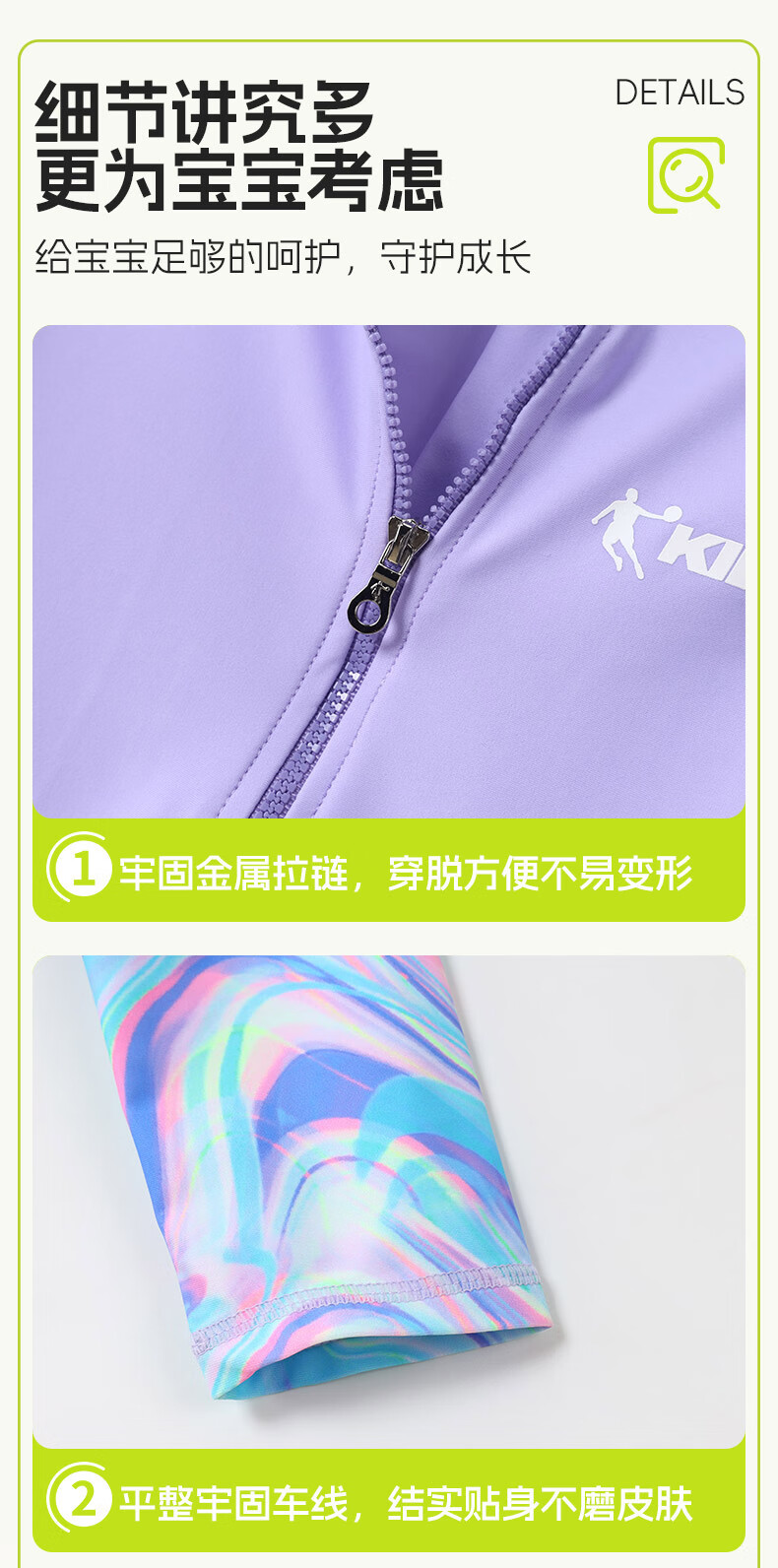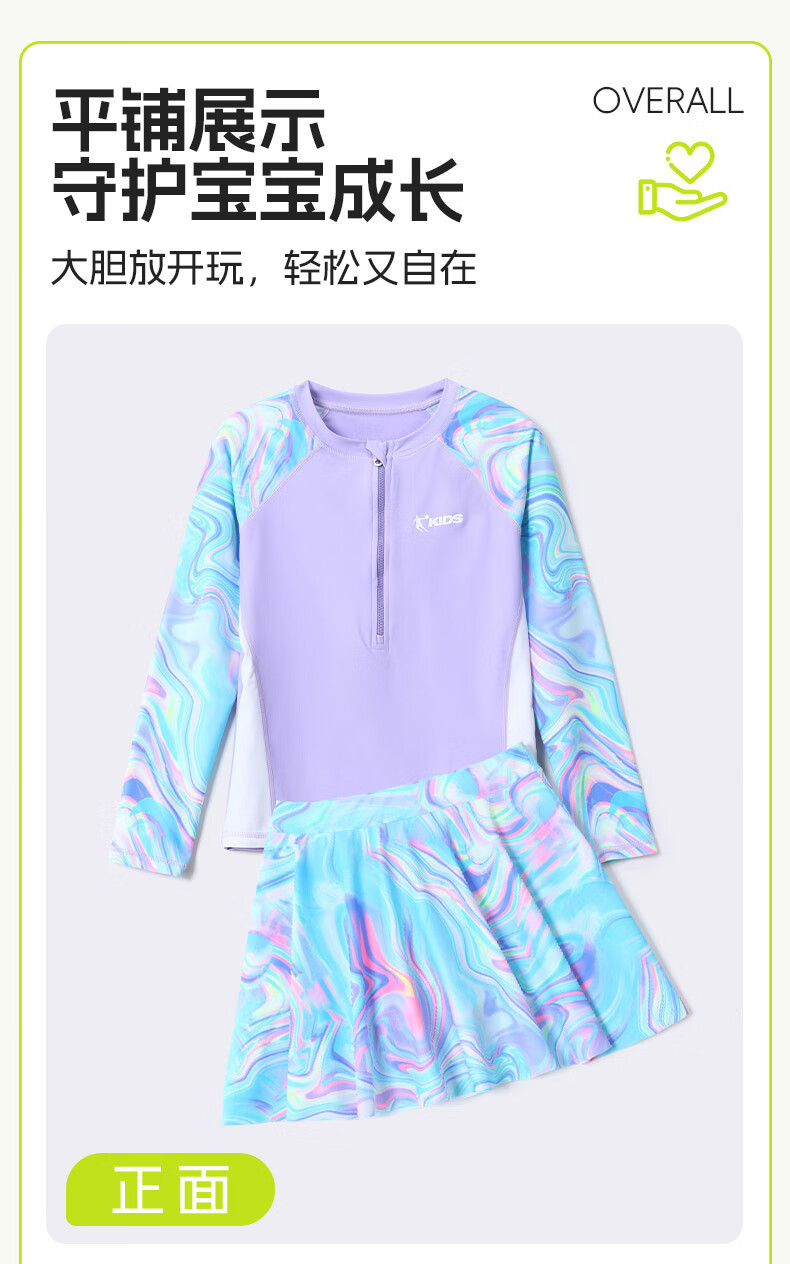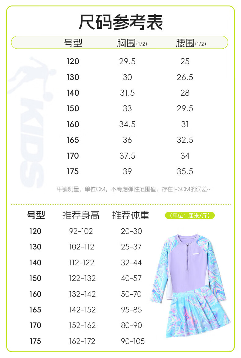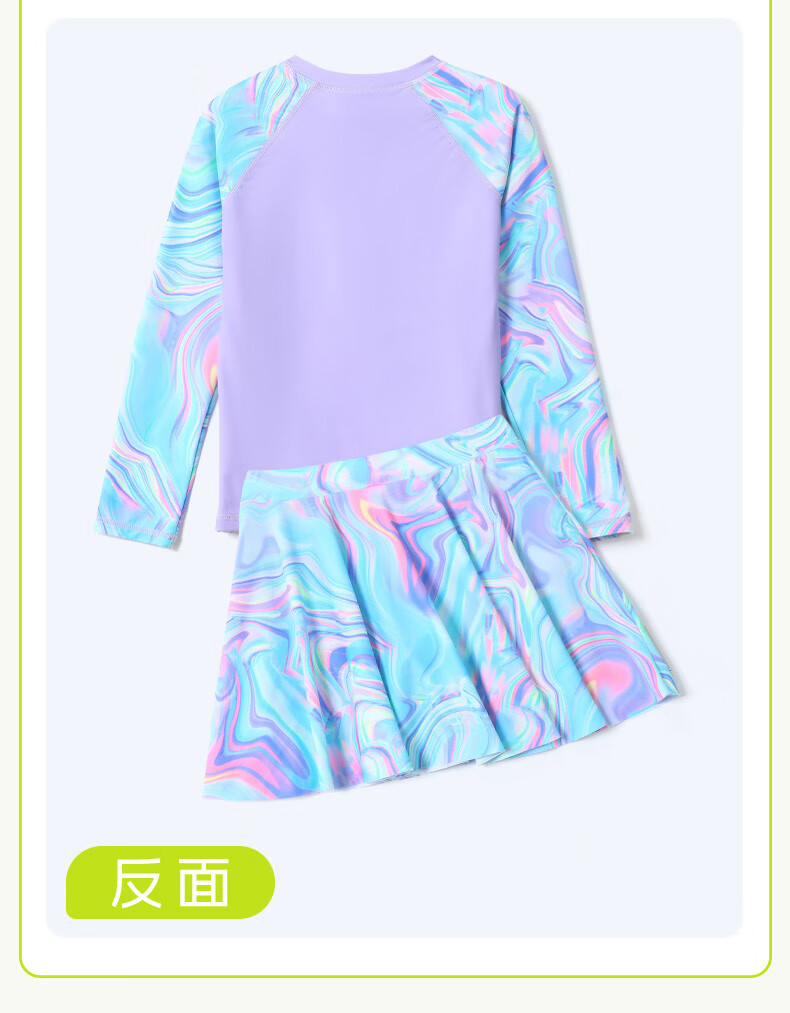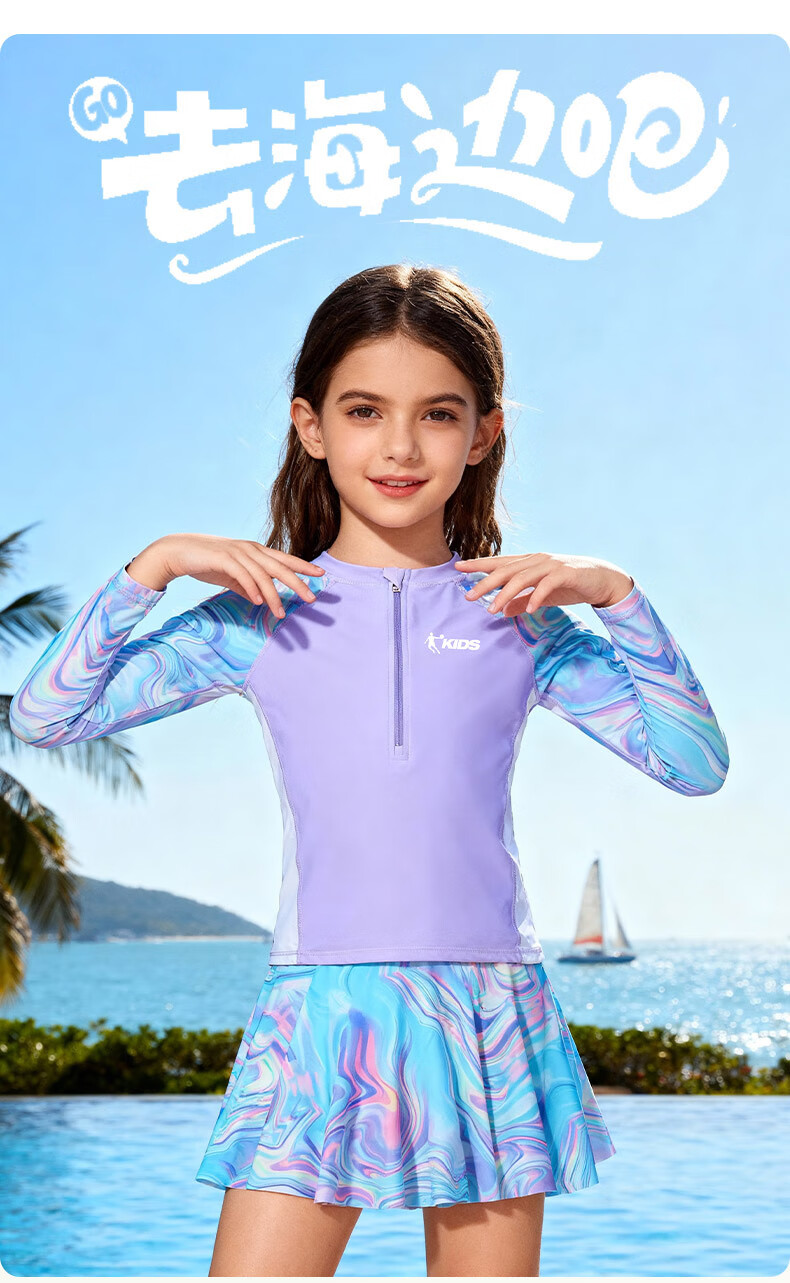 Jordan (QIAODAN) children's split skirt swimsuit girls long-sleeved sun protection swimsuit professional training hot spring printed quick-drying swimsuit purple 130 height 105-115CM weight 30-40Jin Jin equals 0.5 kg
