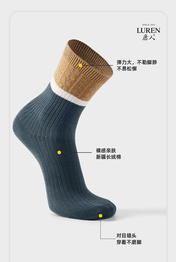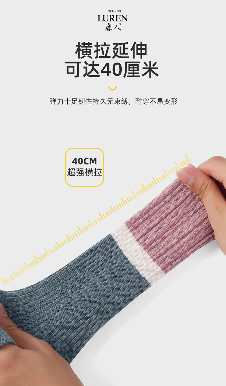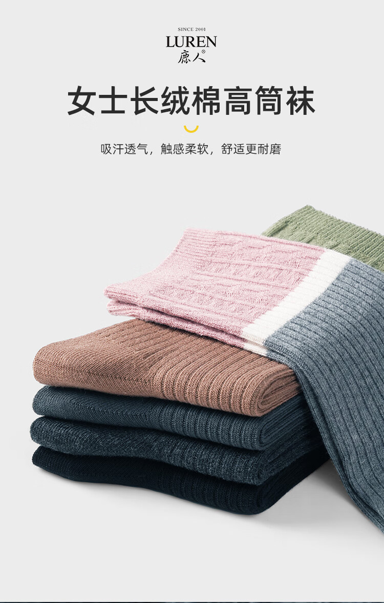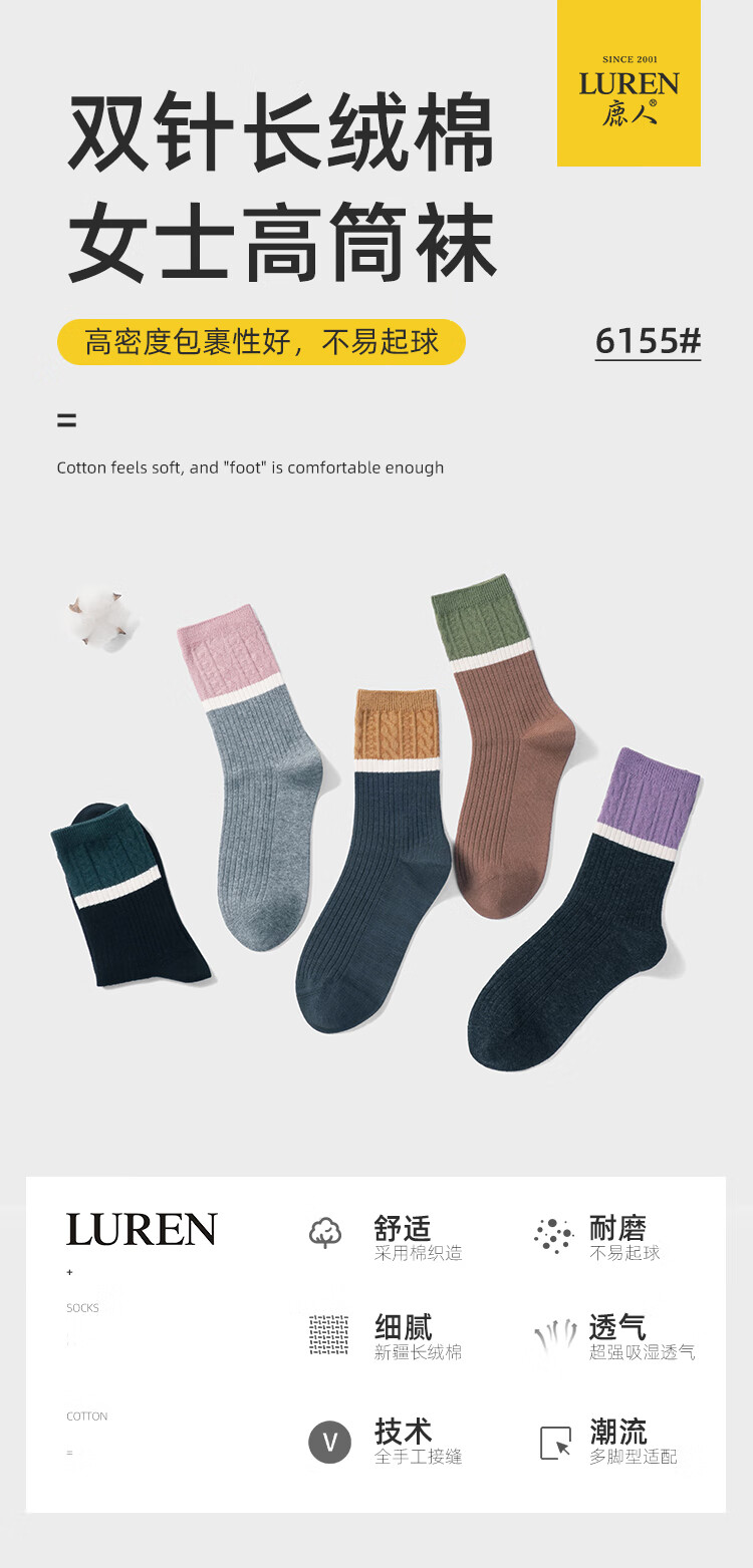 Deermen Women's Socks High Socks Autumn and Winter Style Double Needle Wear-Resistant Splicing Long Staple Cotton Khmer Long Socks Women 6155-Set 1-Pack 5 Pairs One Size