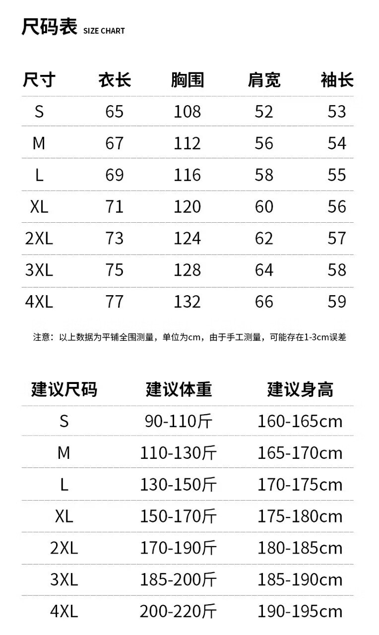 China (cm) 165 / 88-90 170 / 96-98 175 / 108-110 180 / 118-122 185 / 126-130