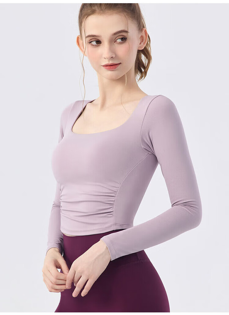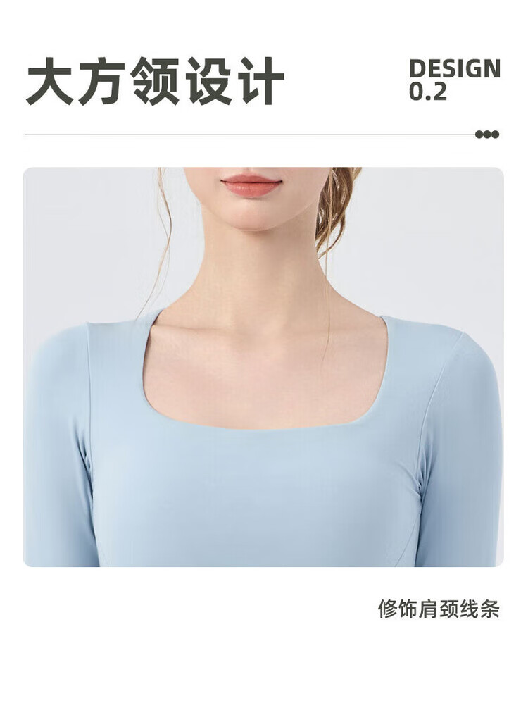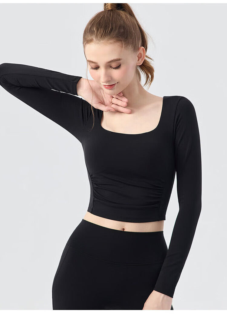 Chengsheng Xutong New Square Neck Nude Yoga Wear Women's Sports Long Sleeve Pilates Training Fitness T-Shirt Top Autumn Black S