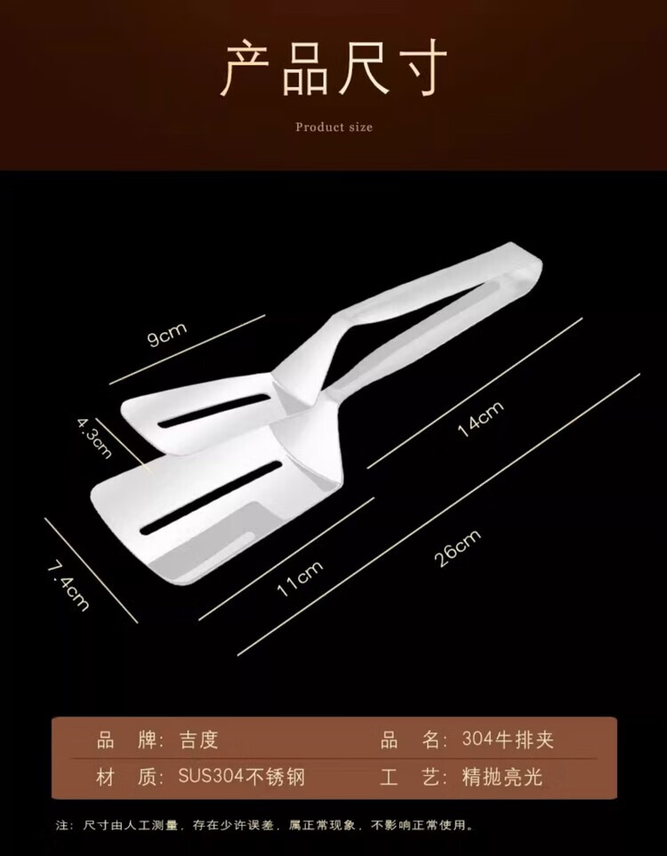 Jidu 304 stainless steel steak special clips thickened household food fried steak shovel bread barbecue meat clips