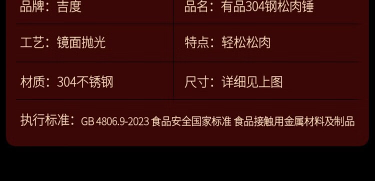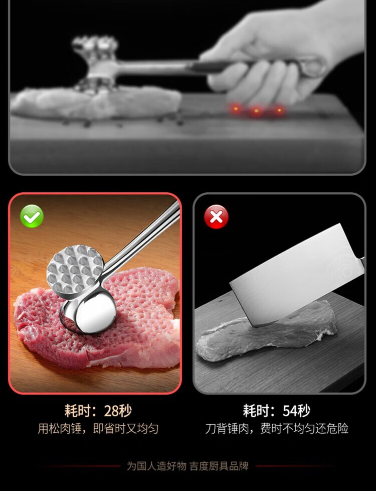 Jidu (jidu) pine meat hammer 304 stainless steel meat pounder steak special tool household meat pine meat needle hammer hammer artifact Youpinquan 304 steel meat pine meat hammer