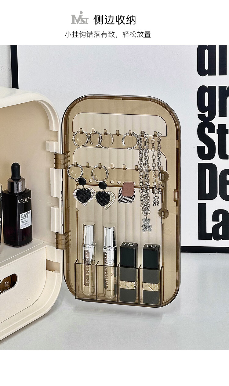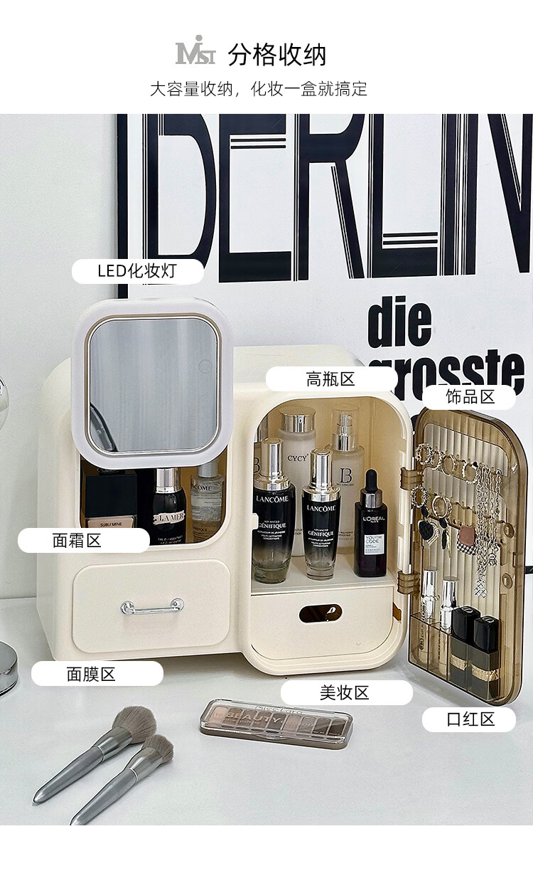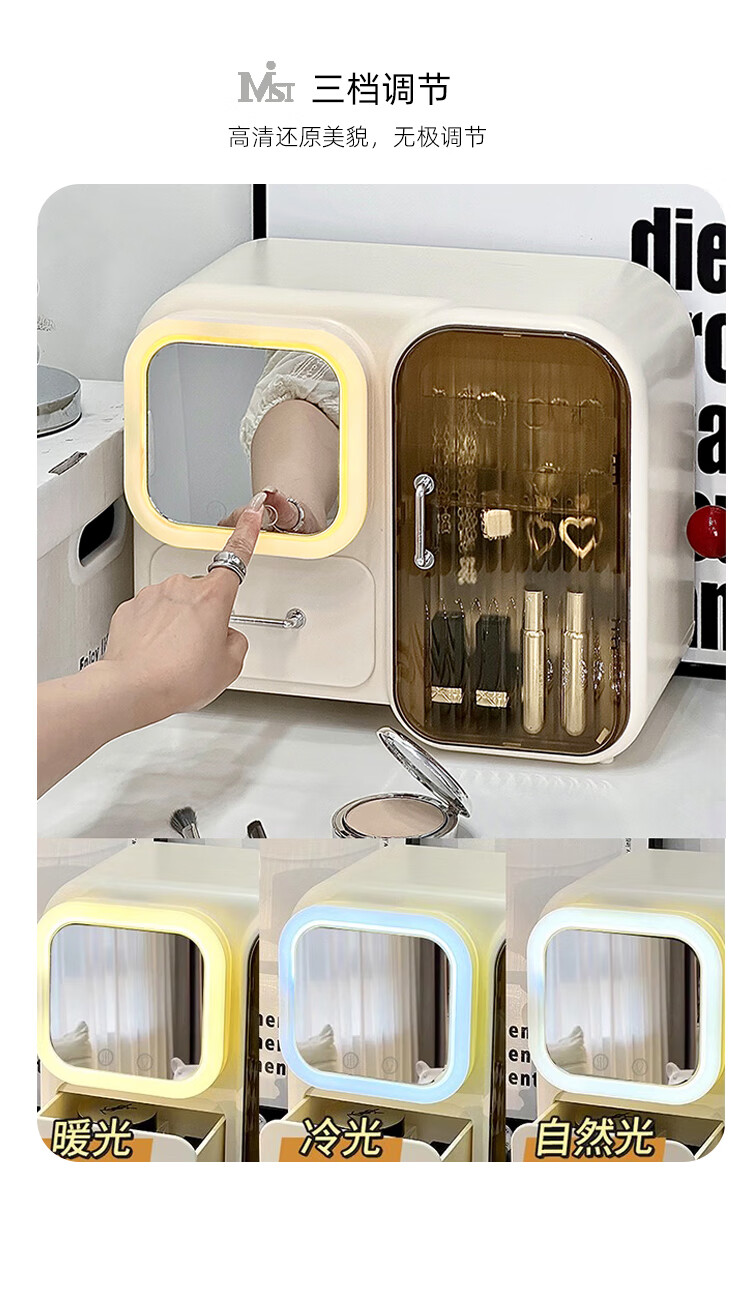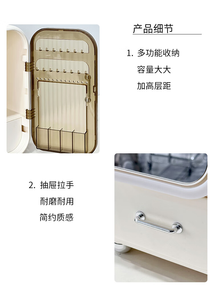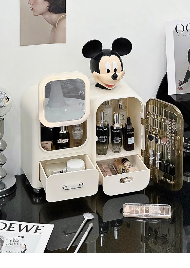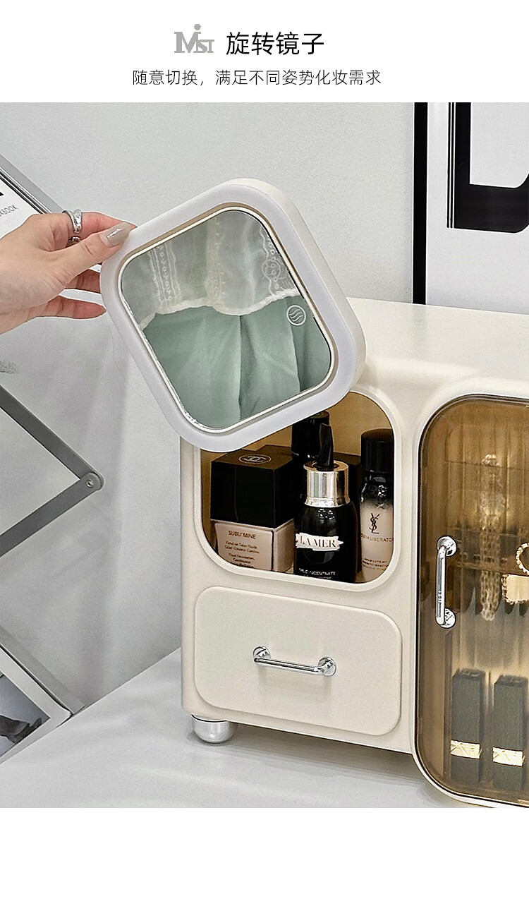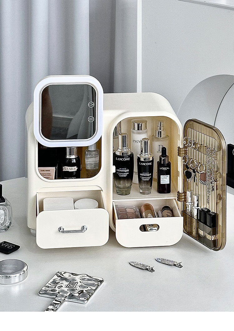 Vipero cosmetic mirror storage box integrated cosmetics storage desktop with mirror integrated dressing table for skin care products, thickened material, strong and durable