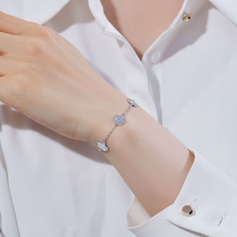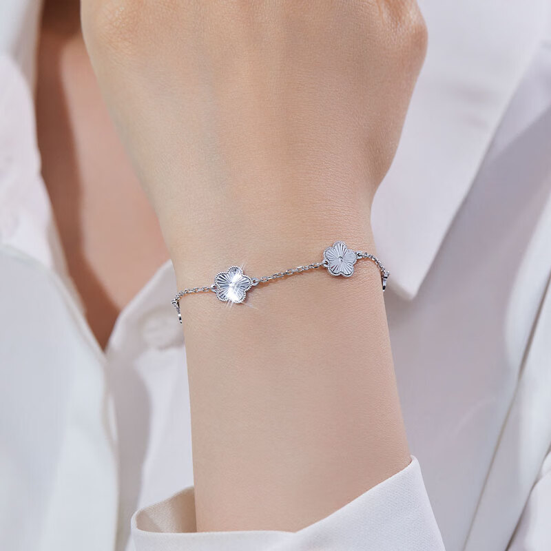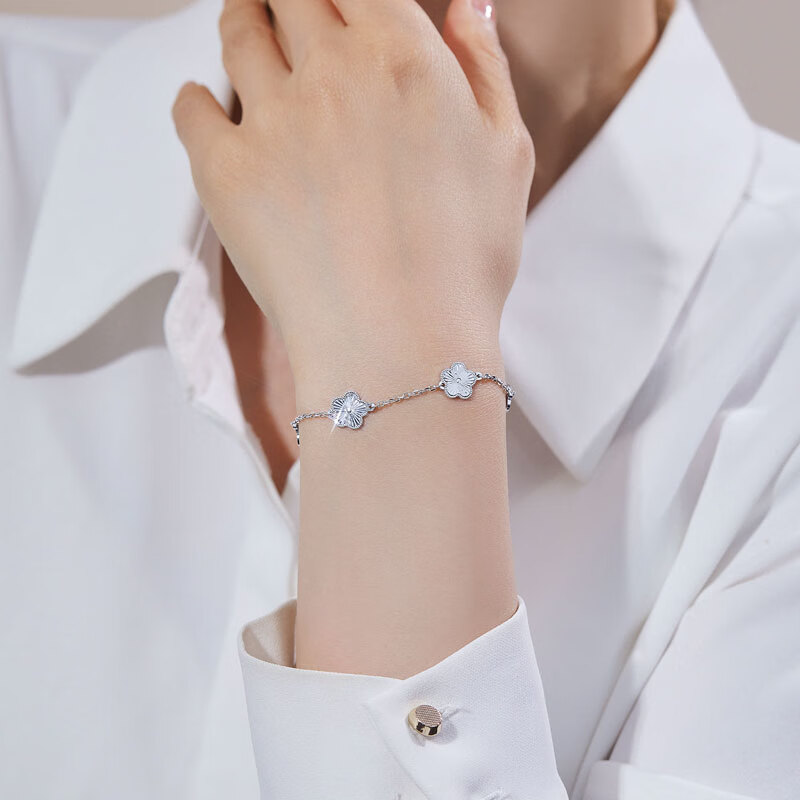 Meluxe peach blossom pt950 platinum bracelet honeycomb bracelet platinum chain birthday gift A style 6.86g-16+3cm