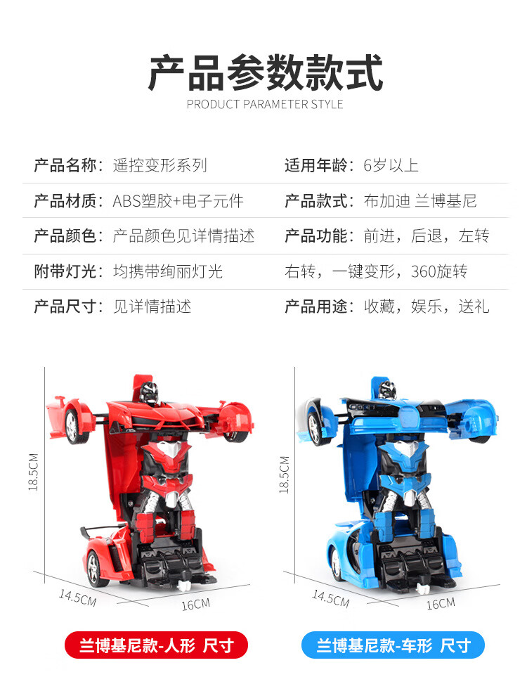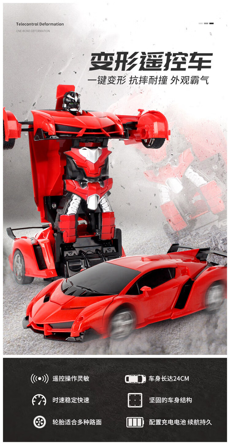 Chengda 118 deformation remote control car one-click deformation robot children's toy car electric remote control car simulation car small deformation 24 cm Lambo red does not include electricity