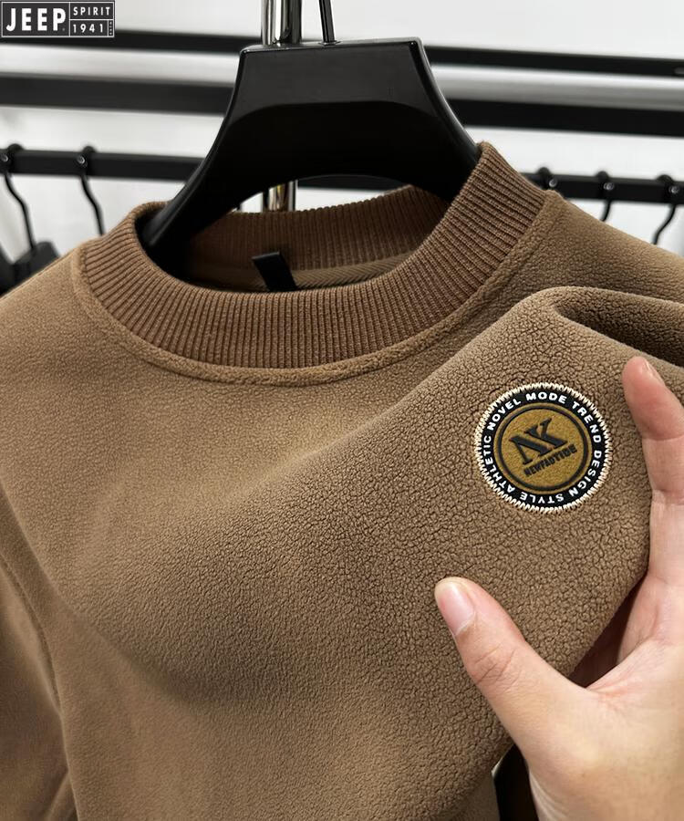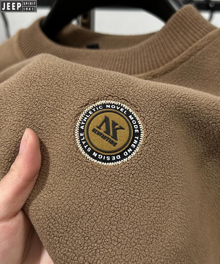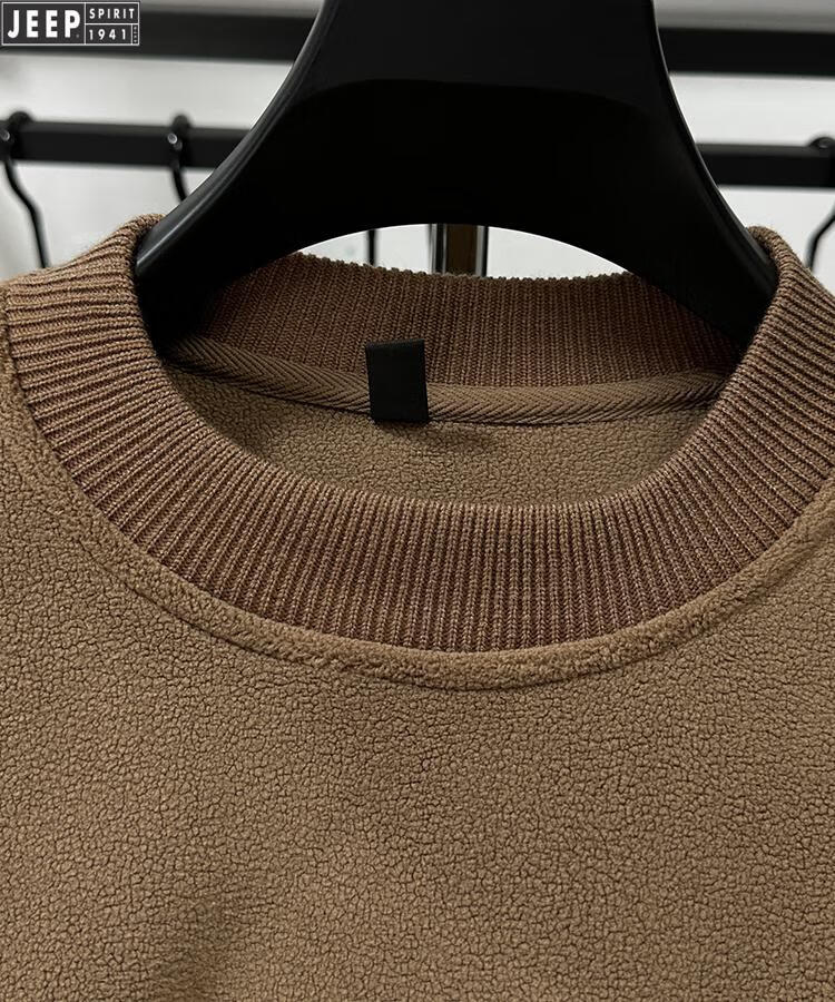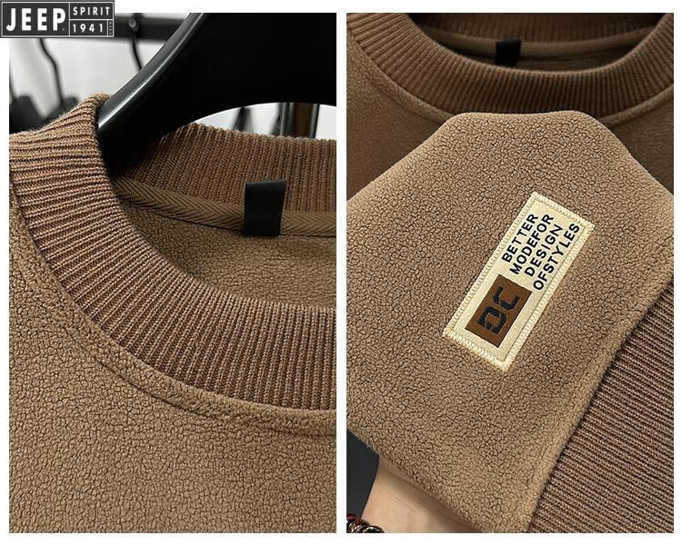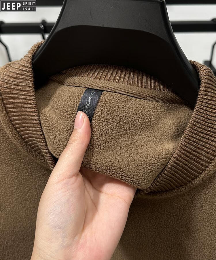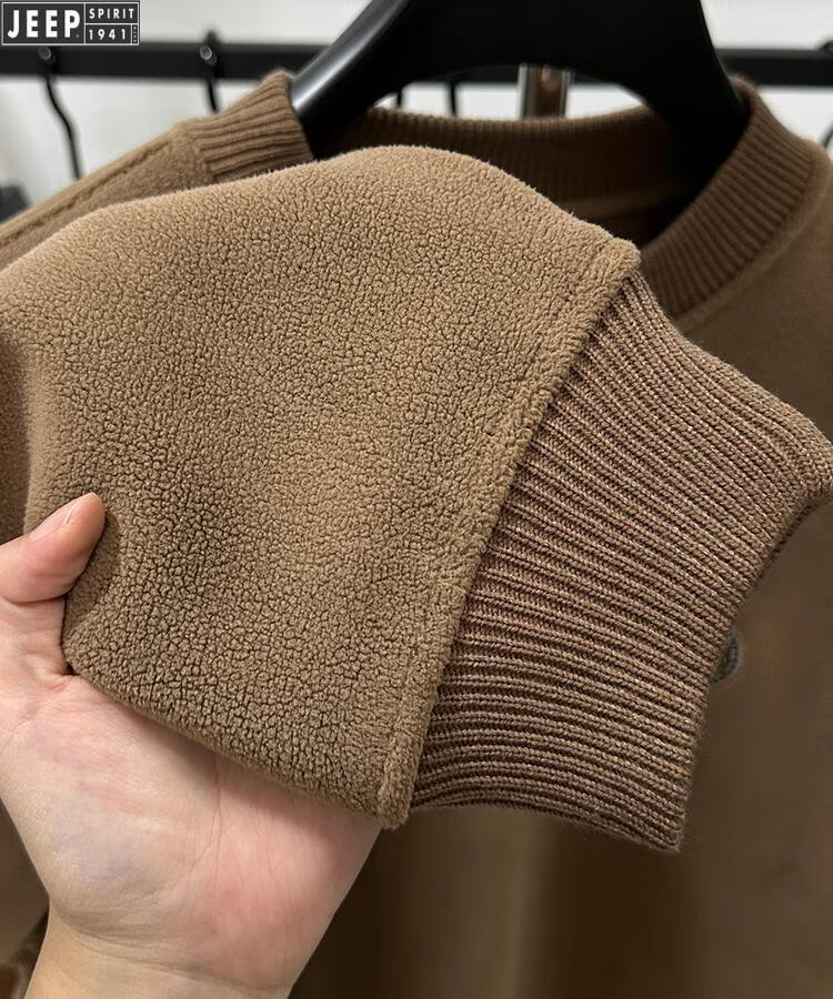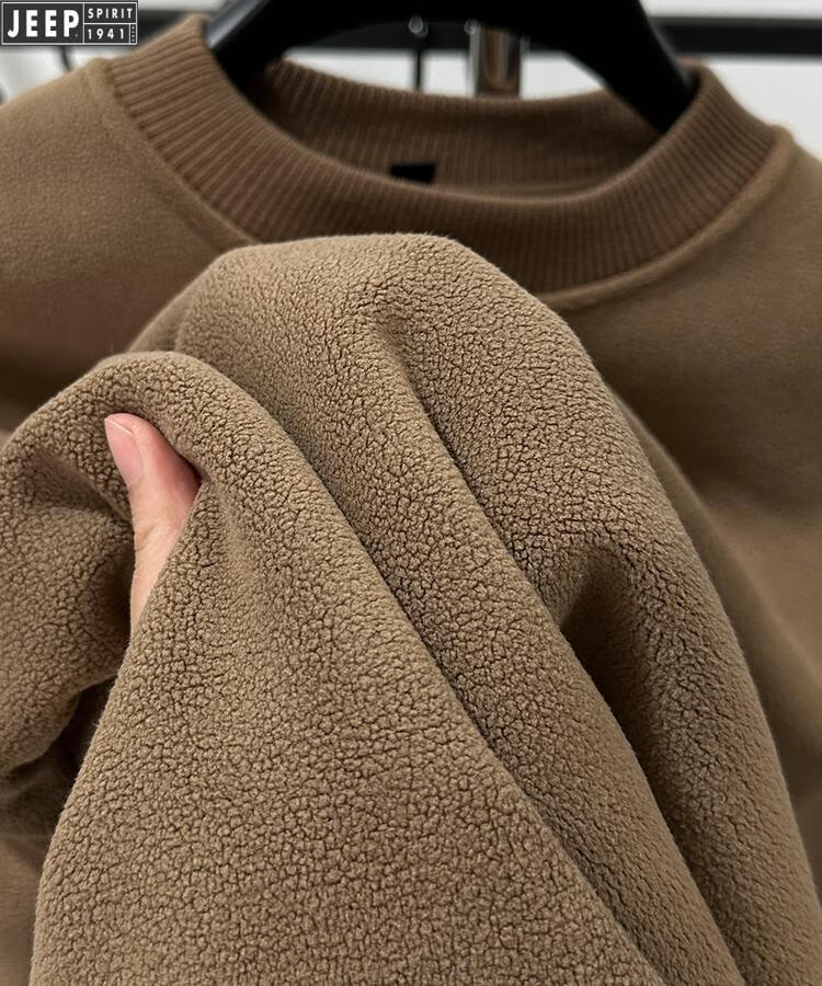 JEEP Heavy Thick Polar Fleece Sweater Men's Winter 2026 New Fleece Bottoming Shirt Men's Round Neck Warm Plus Velvet Inner Camel 2XL /180
