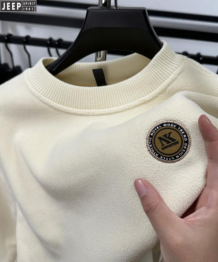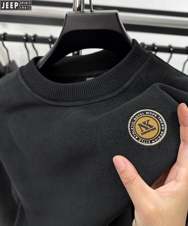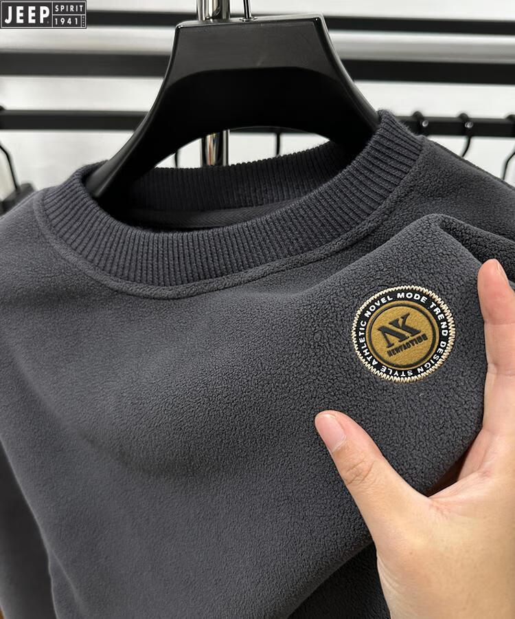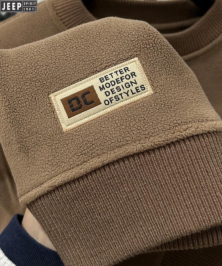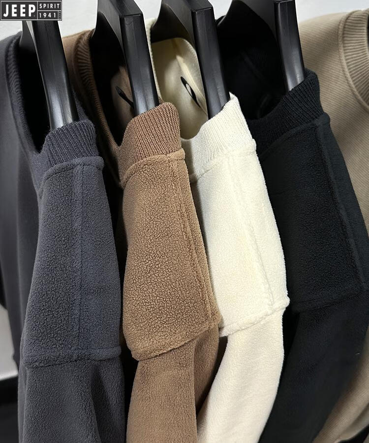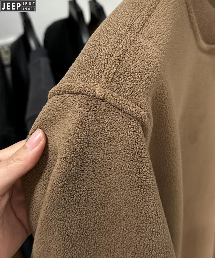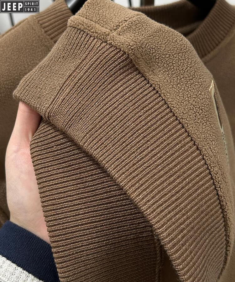 JEEP Heavy Thick Polar Fleece Sweater Men's Winter 2026 New Fleece Bottoming Shirt Men's Round Neck Warm Plus Velvet Inner Camel 2XL /180