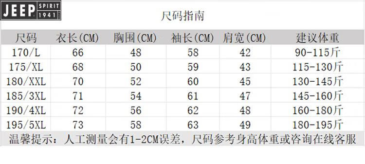 China (cm) 165 / 88-90 170 / 96-98 175 / 108-110 180 / 118-122 185 / 126-130