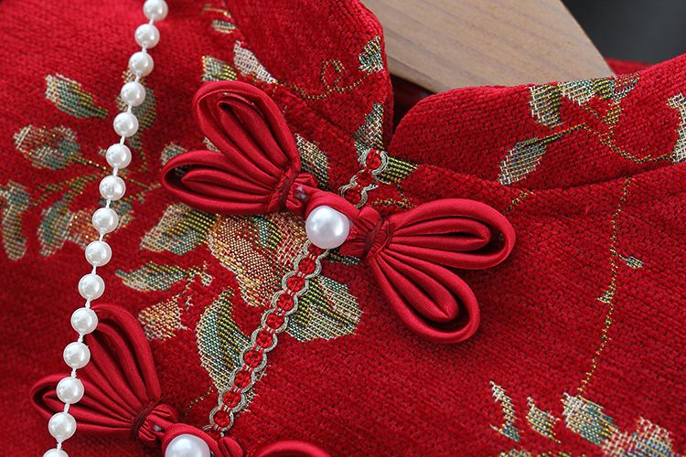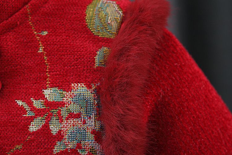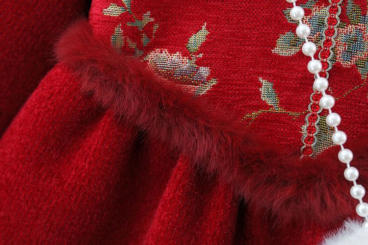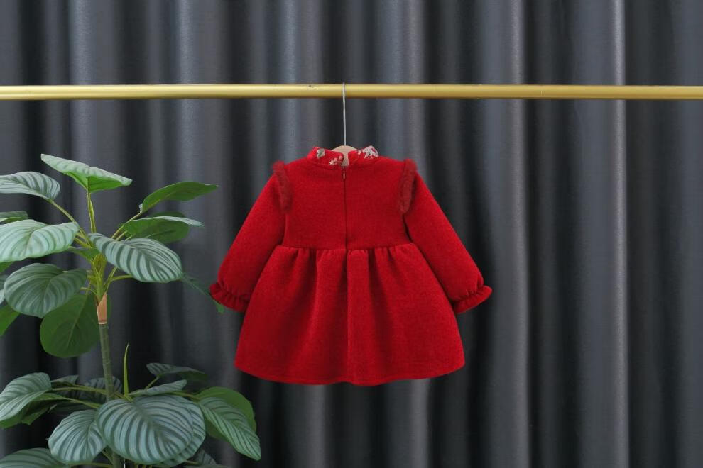 G.duck girls dress autumn and winter thickened children's national style festive New Year's greetings baby girl baby princess skirt plus velvet red 73 about height 65 cm