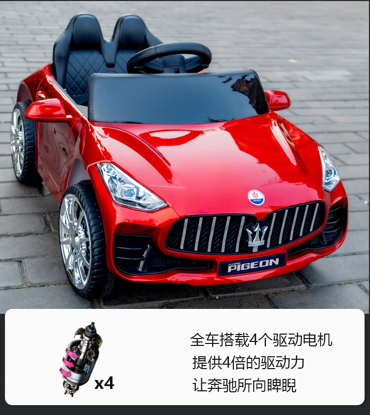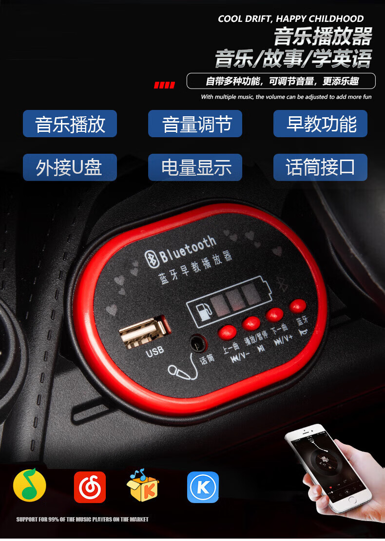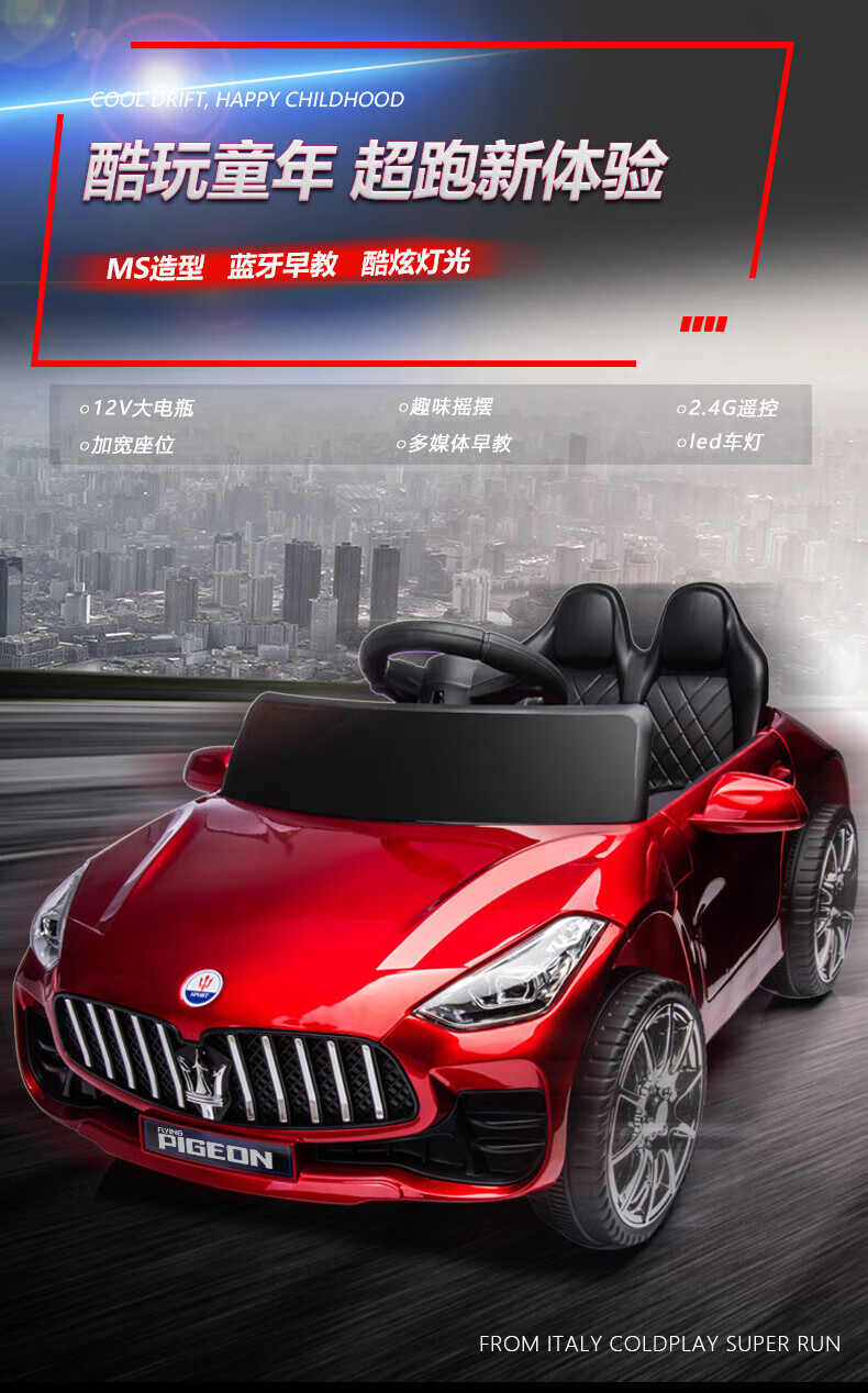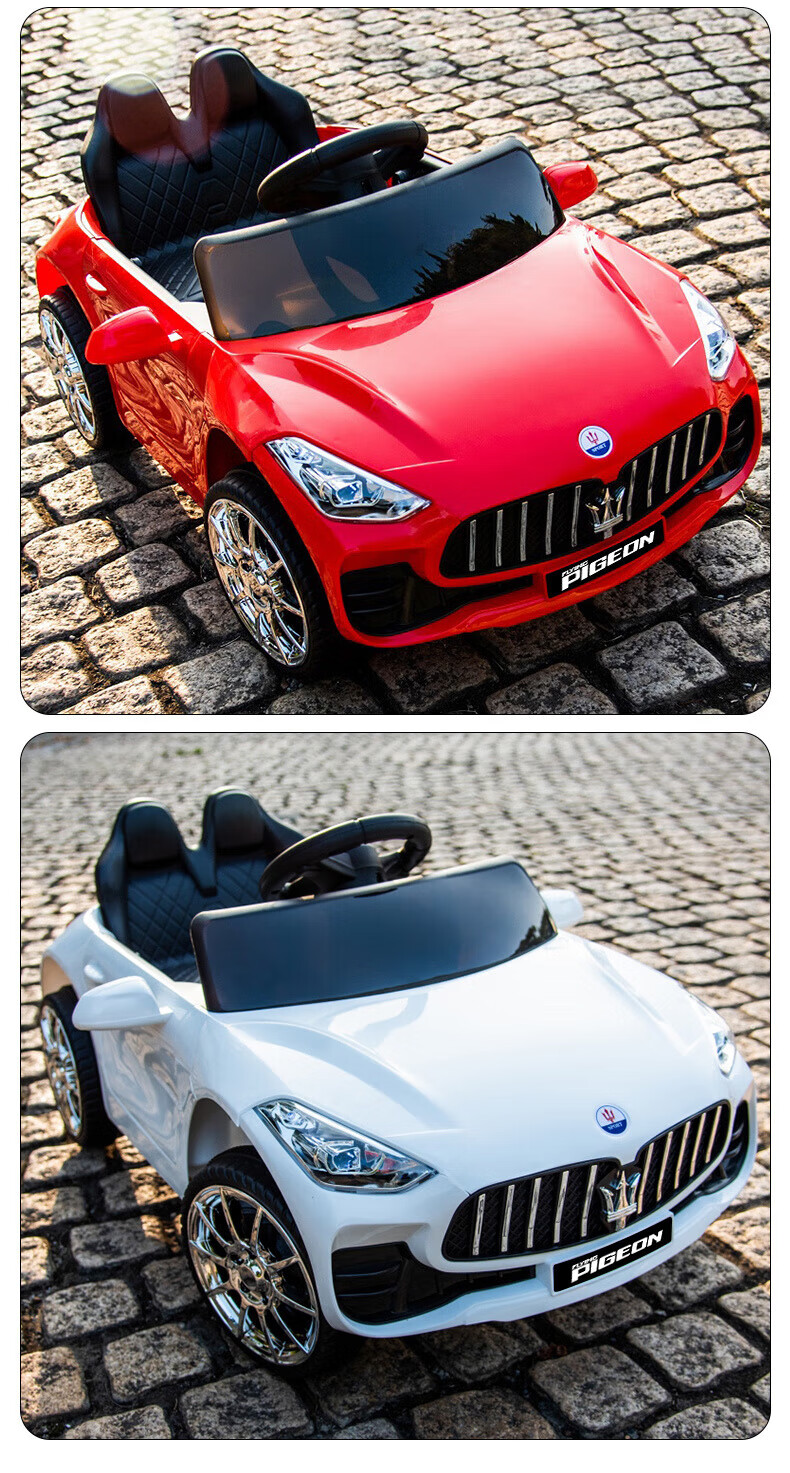 Children's electric car four-wheel car remote control toy car child can sit large baby stroller rechargeable white bluetooth music swing remote control self-driving anti-
