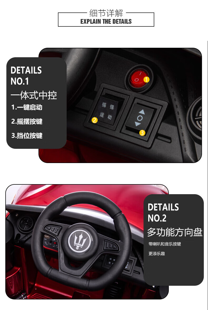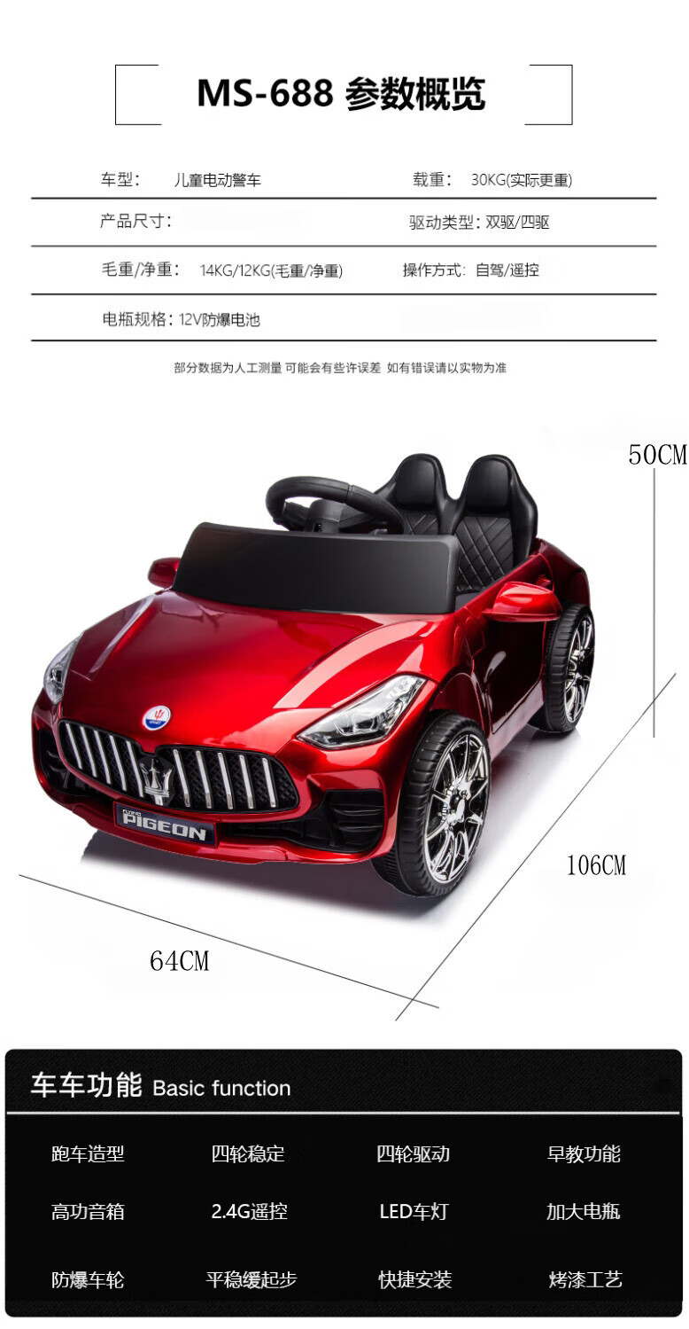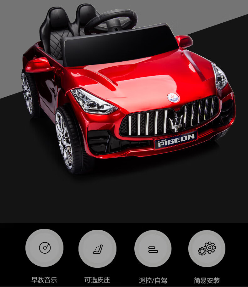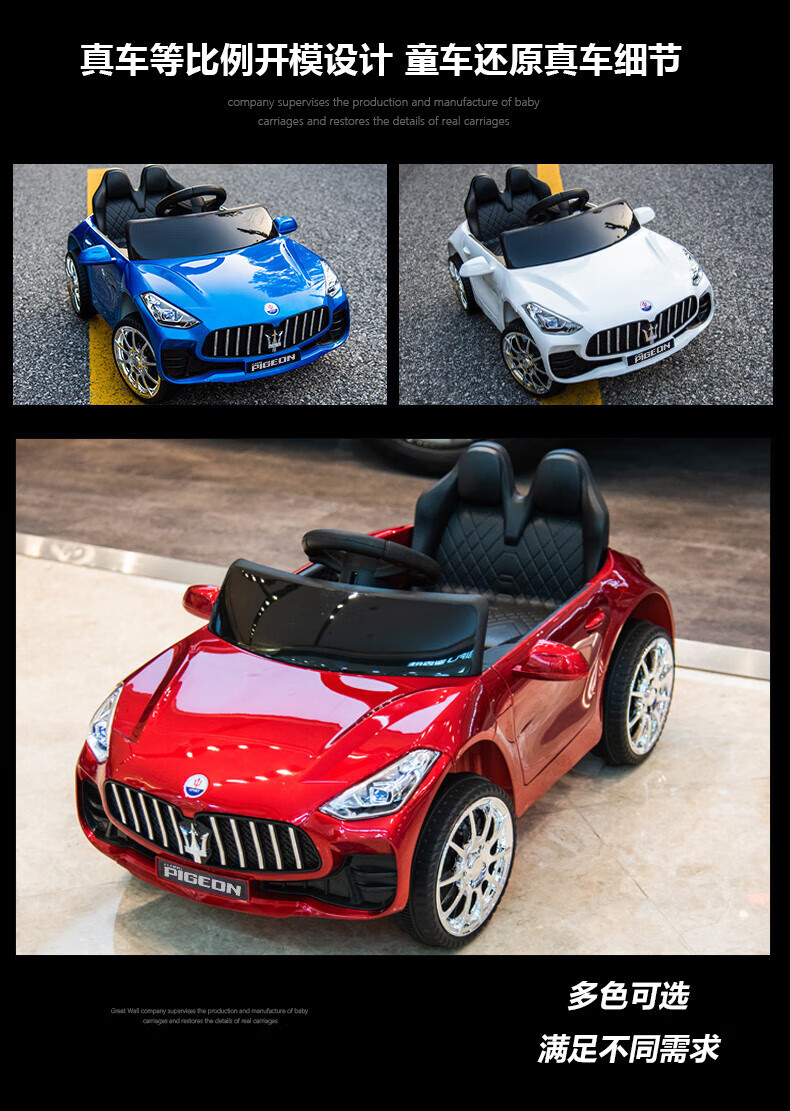 Children's electric car four-wheel car remote control toy car child can sit large baby stroller rechargeable white bluetooth music swing remote control self-driving anti-