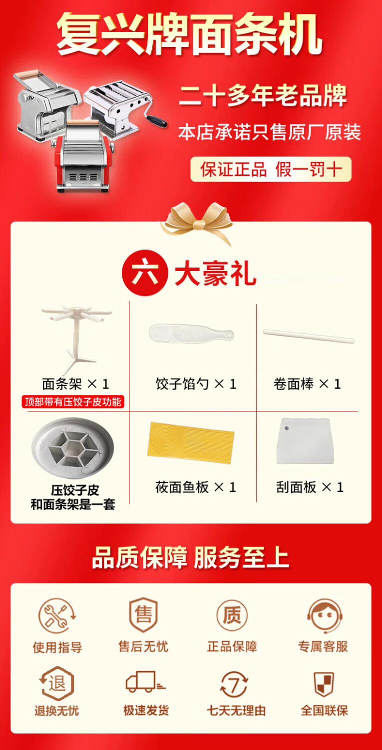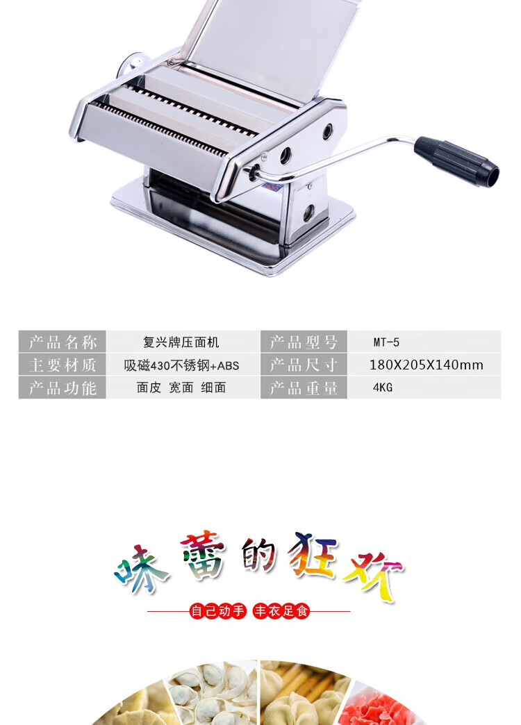 Shandong Longkou brand household manual noodle machine small hand-operated noodle machine with anti-counterfeiting dough WZY electric model DMT-10A two knives with pallet and gift bag