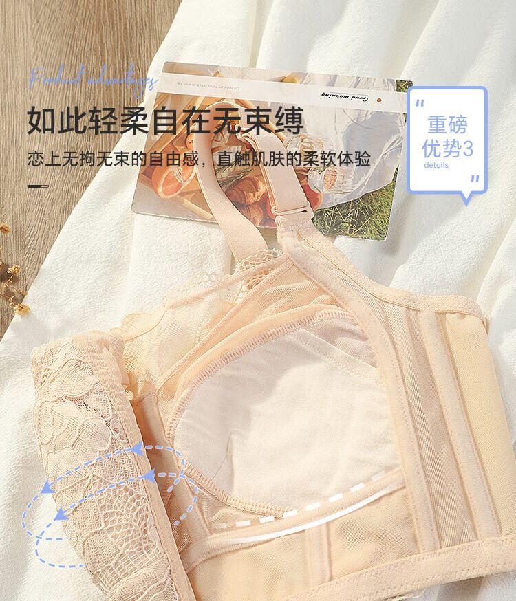 Strapless bra, no steel ring, anti-exposure, thin summer big bust bra, women's lace detachable spaghetti straps gathered, big red (upgraded version, baby grade A type cotton cup), one size 75B