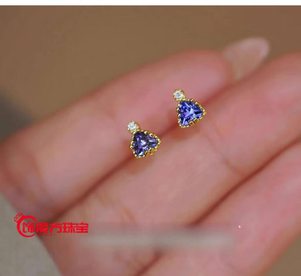 Simple and elegant tanzanite earrings, tanzanite island s925 silver for women, exquisite zircon inlay, shiny, compact, golden pair