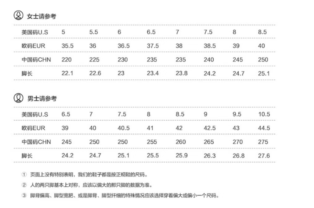 China (cm) 36 - 37 38 - 39 40 - 42 43 - 44 45 - 47